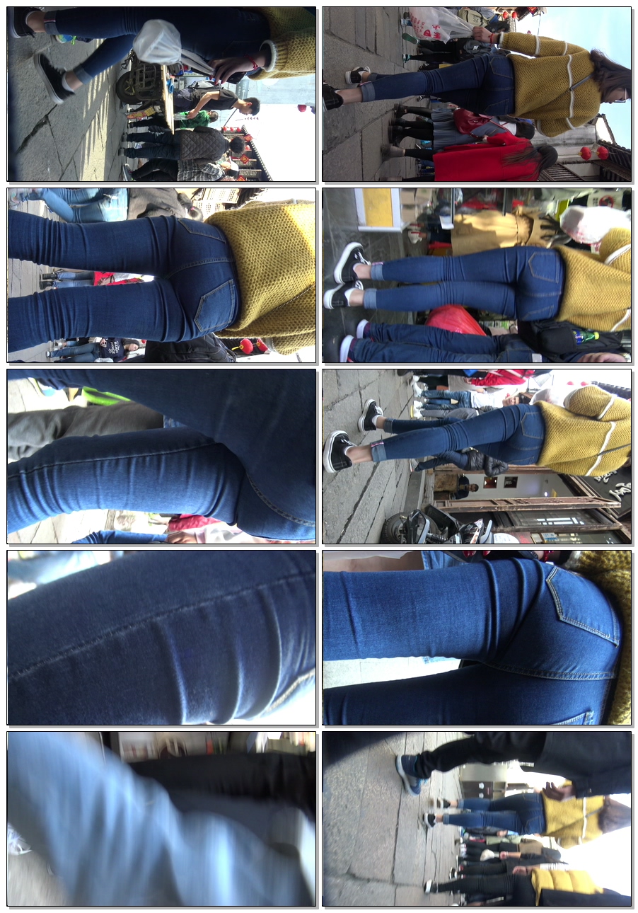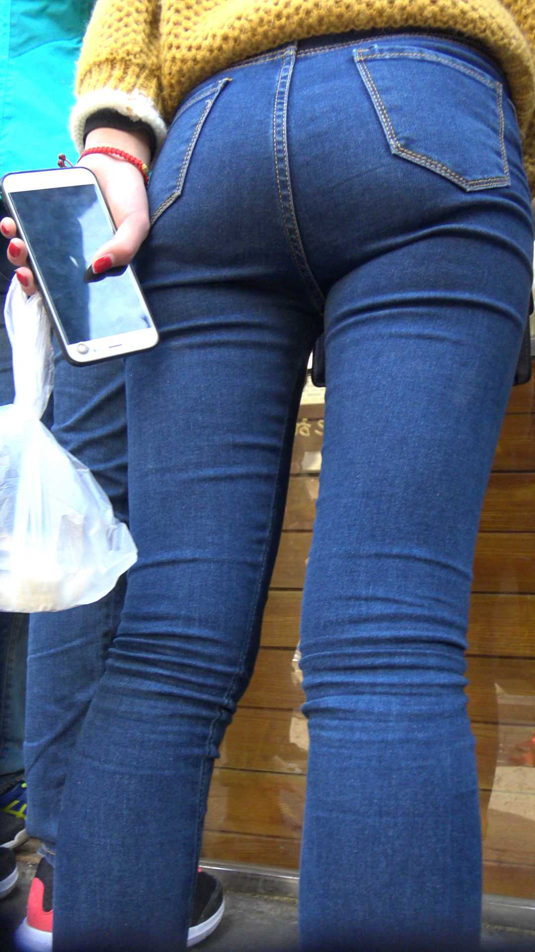 C1429鹰眼力荐极品蓝色紧身牛仔裤落单美女 |