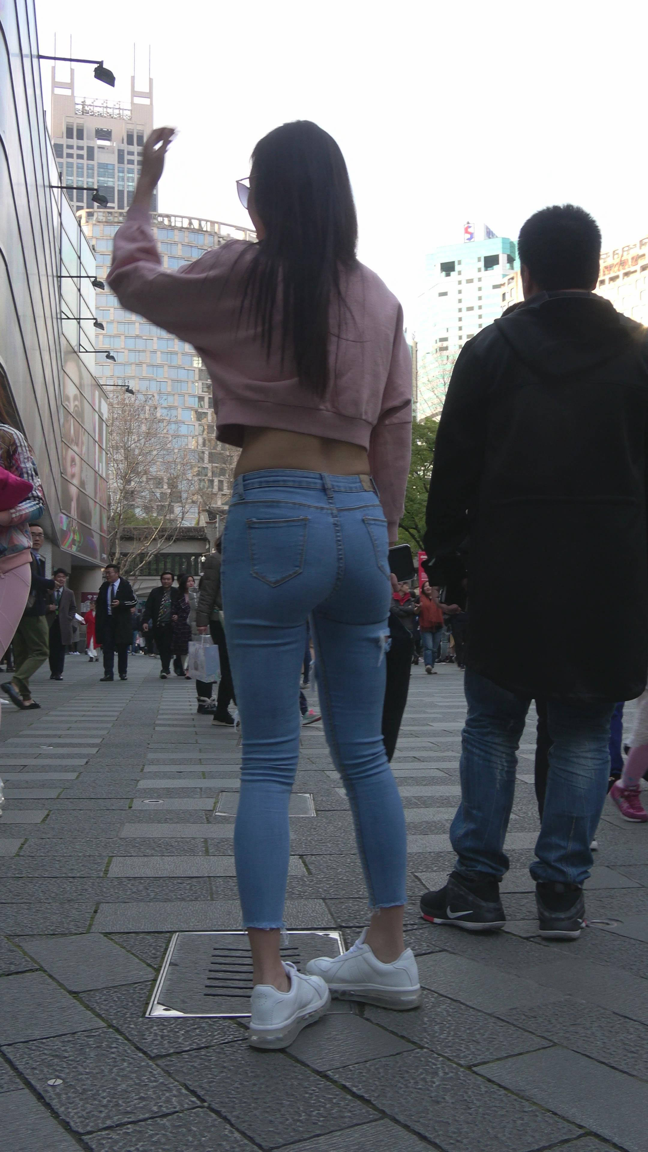 4K 超紧身牛仔裤粉色外套美女 编号7334 |