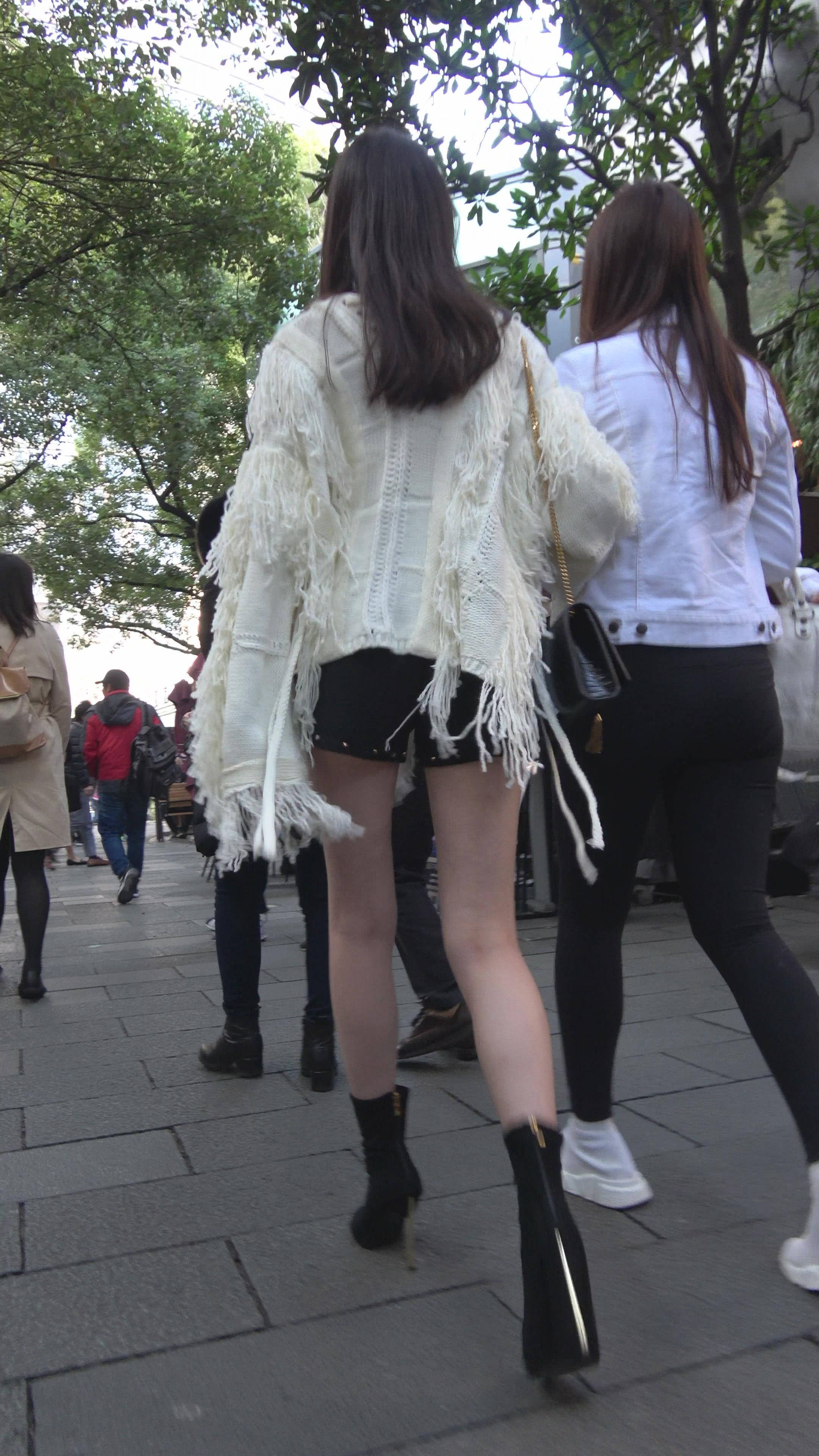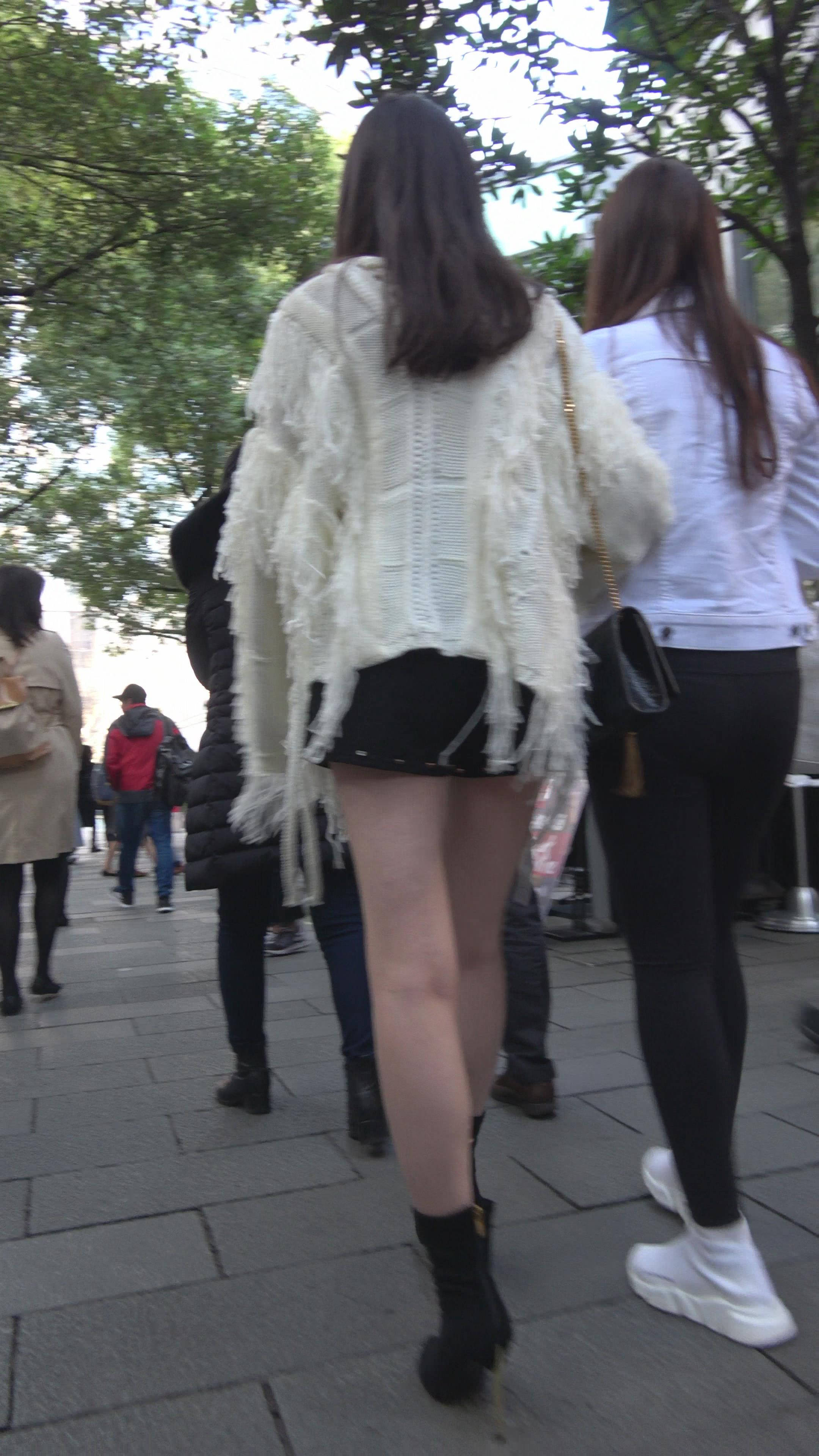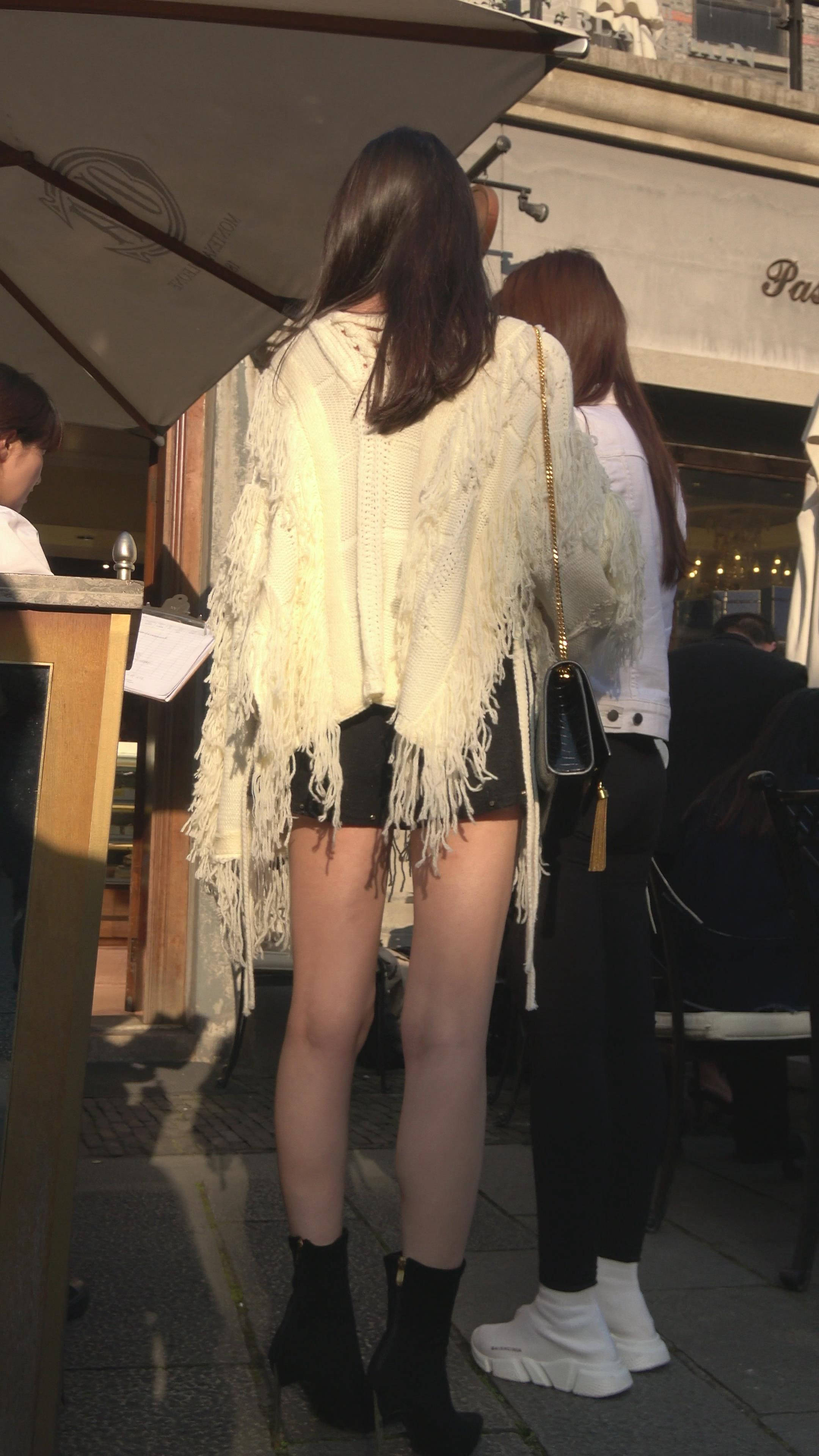 4K - 白色毛衣街拍性感美腿漂亮女神 编号7463 |