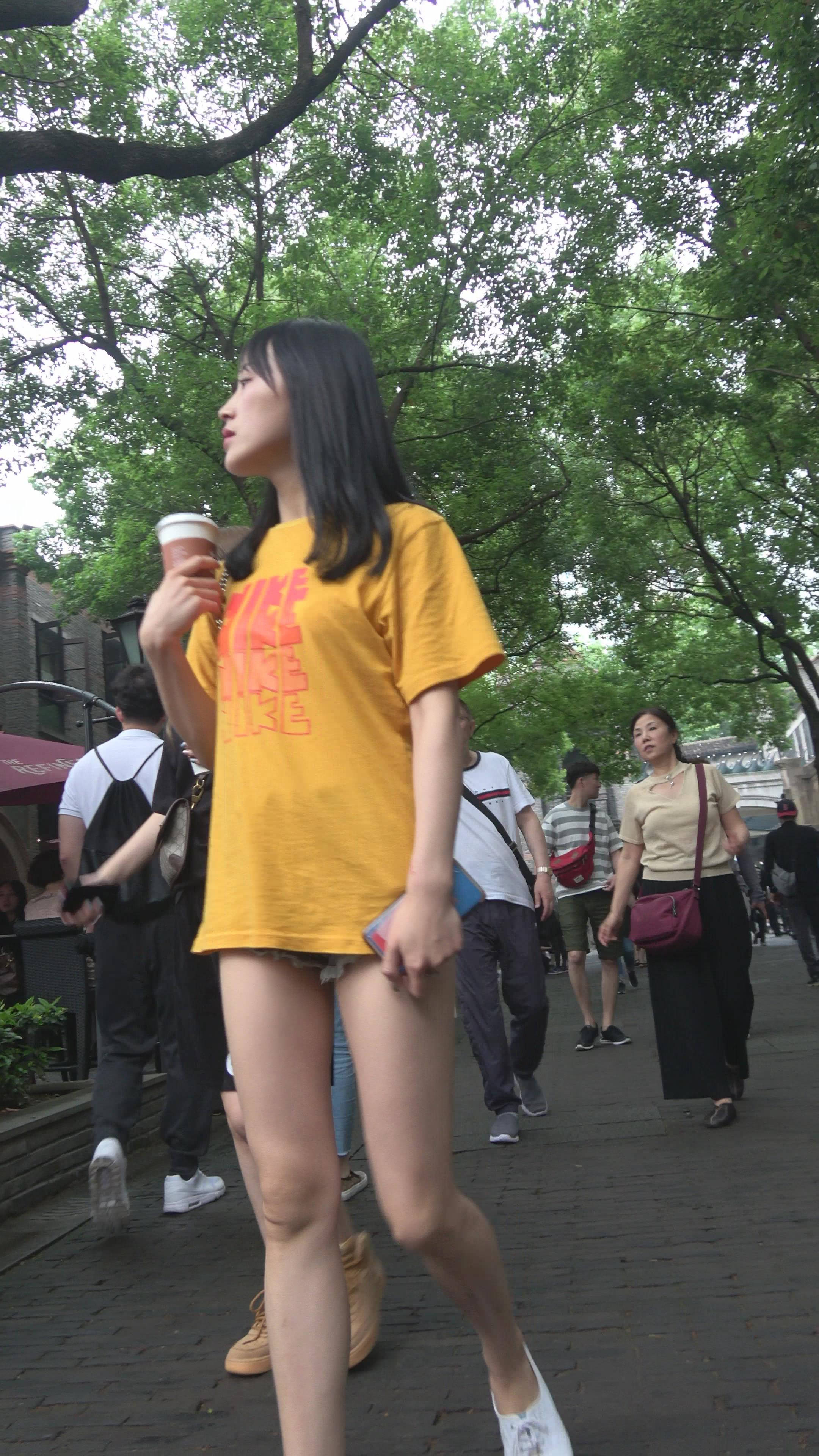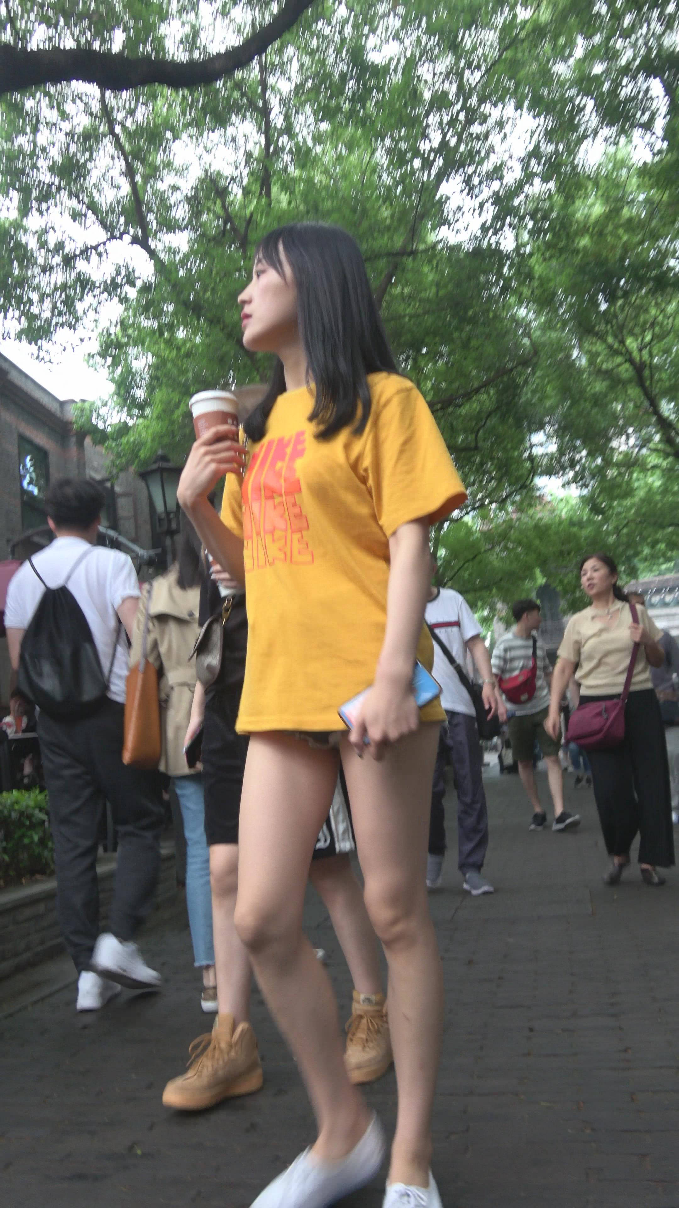 4K 黄色T恤衫超短热裤月牙臀美少女 编号7500 |