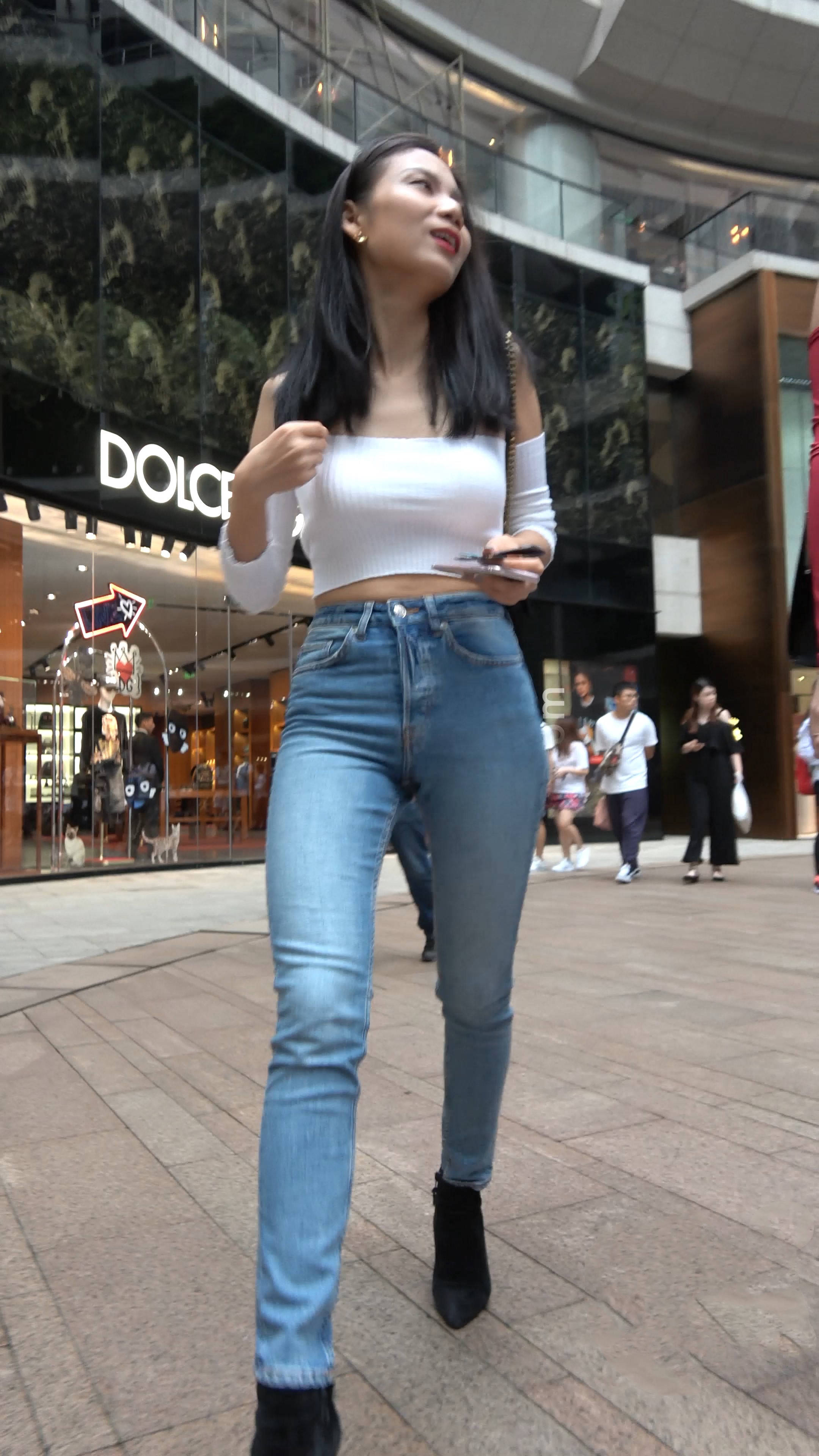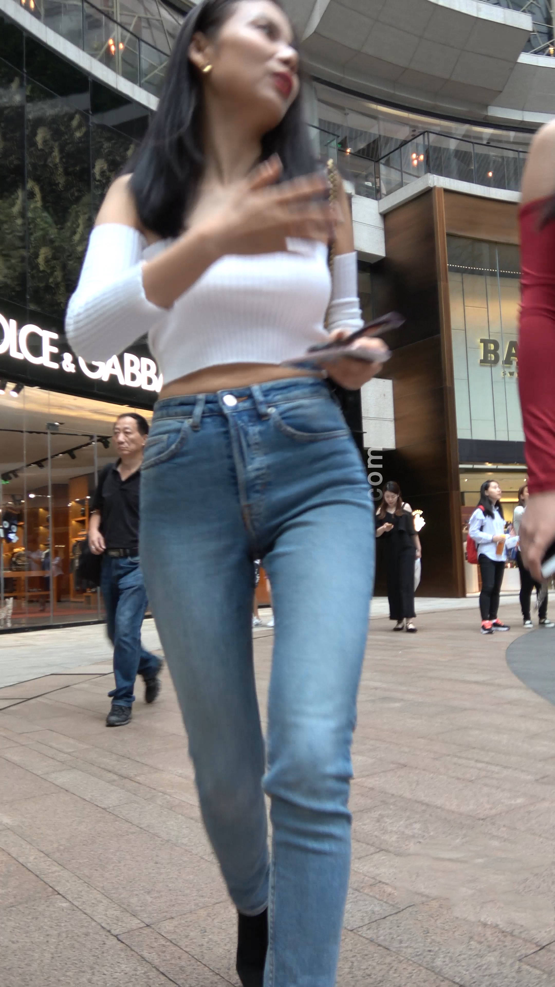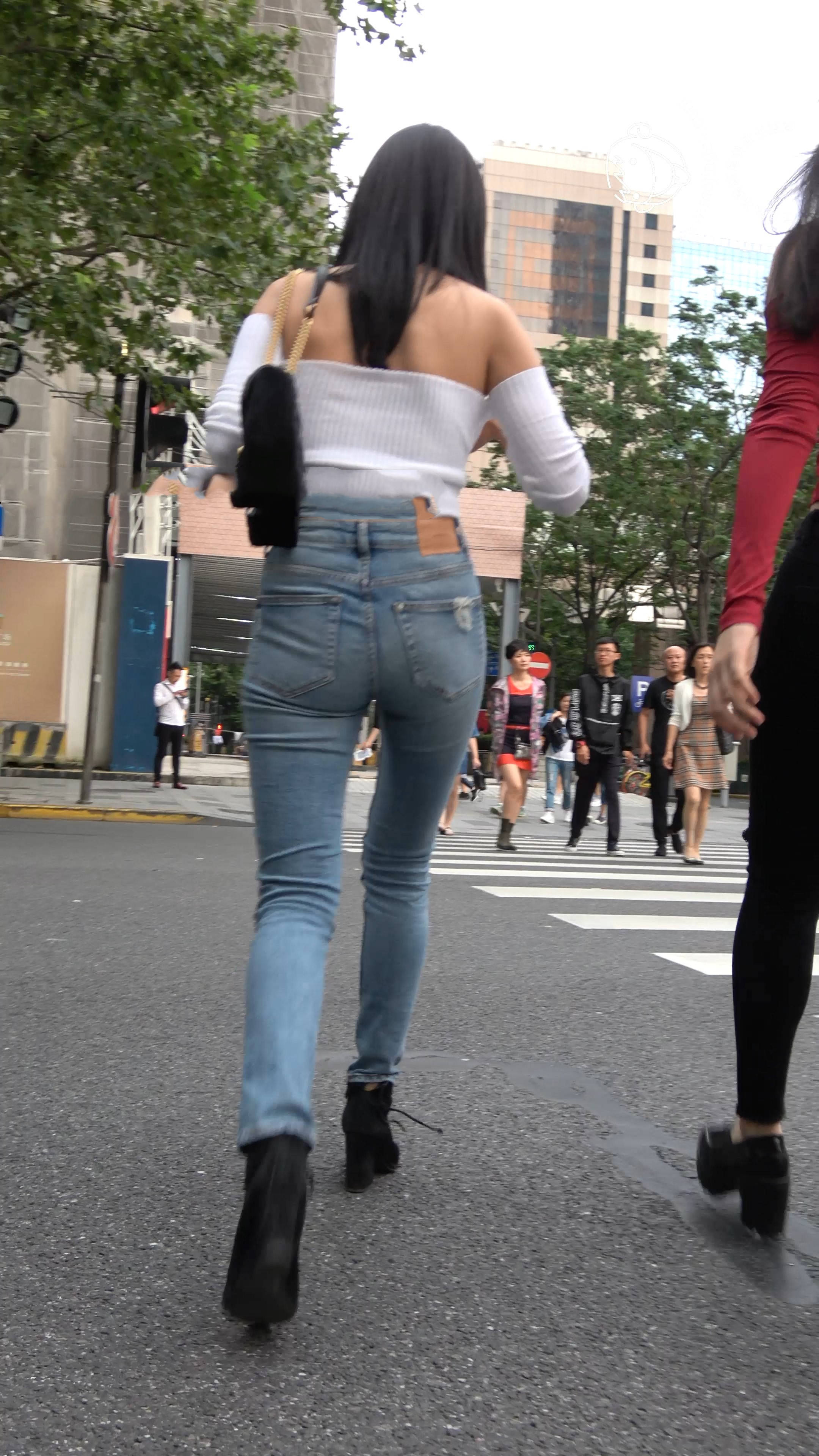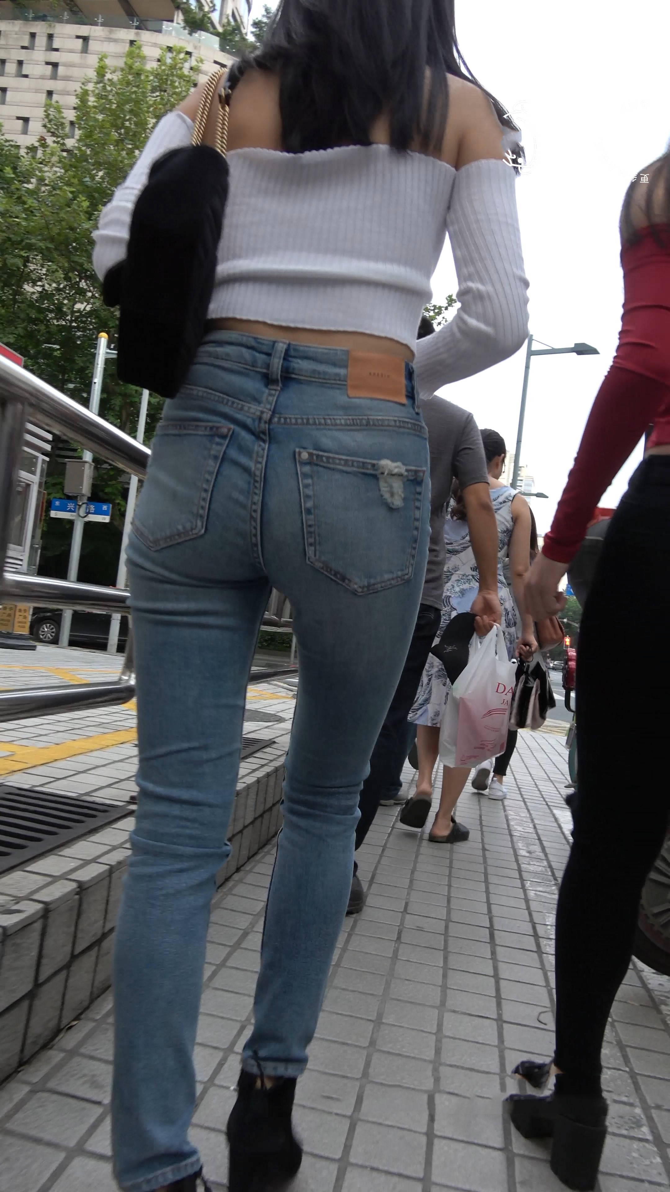 4k超清街拍一字抹胸蓝色紧牛美女 编号7685 |