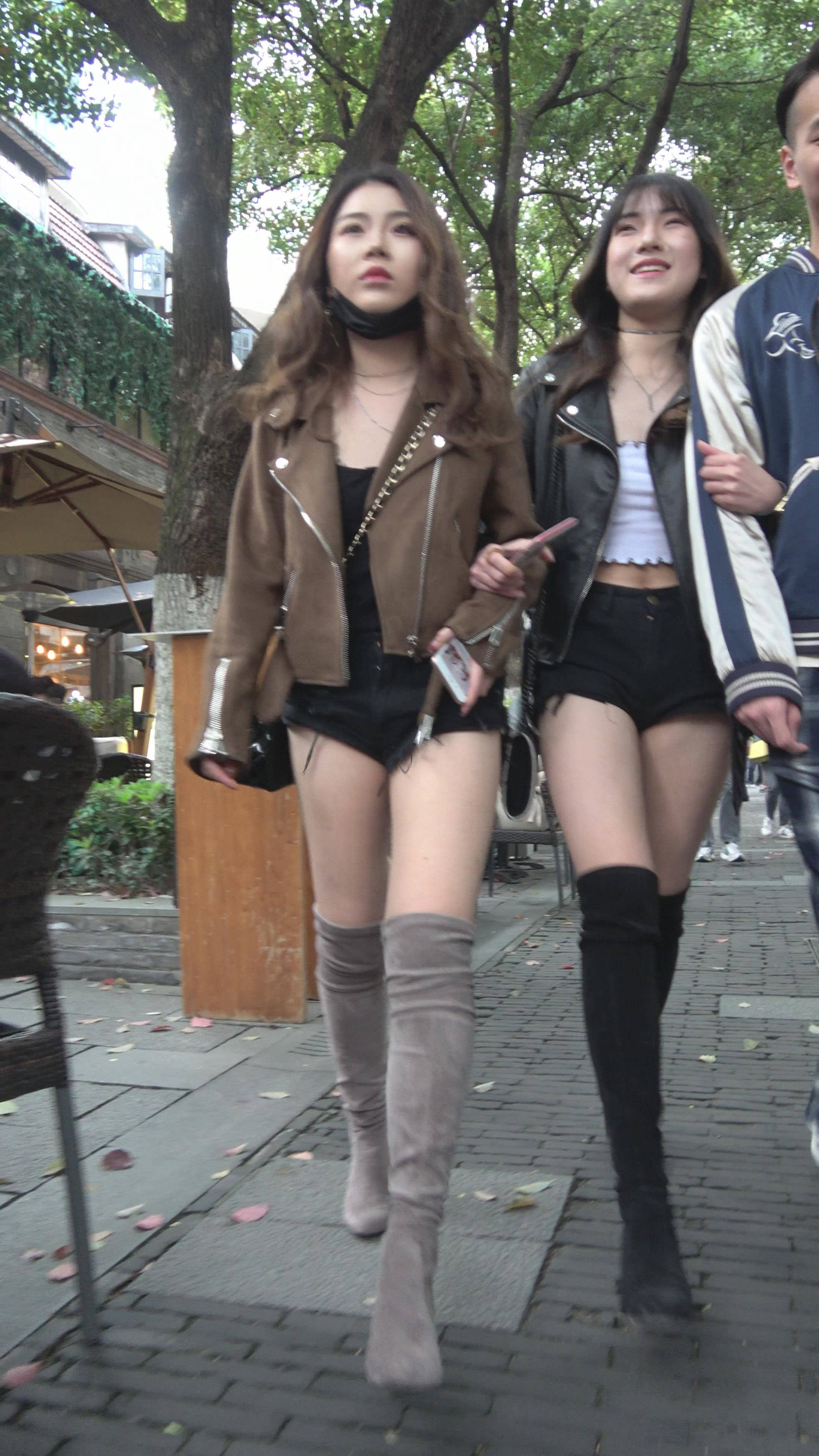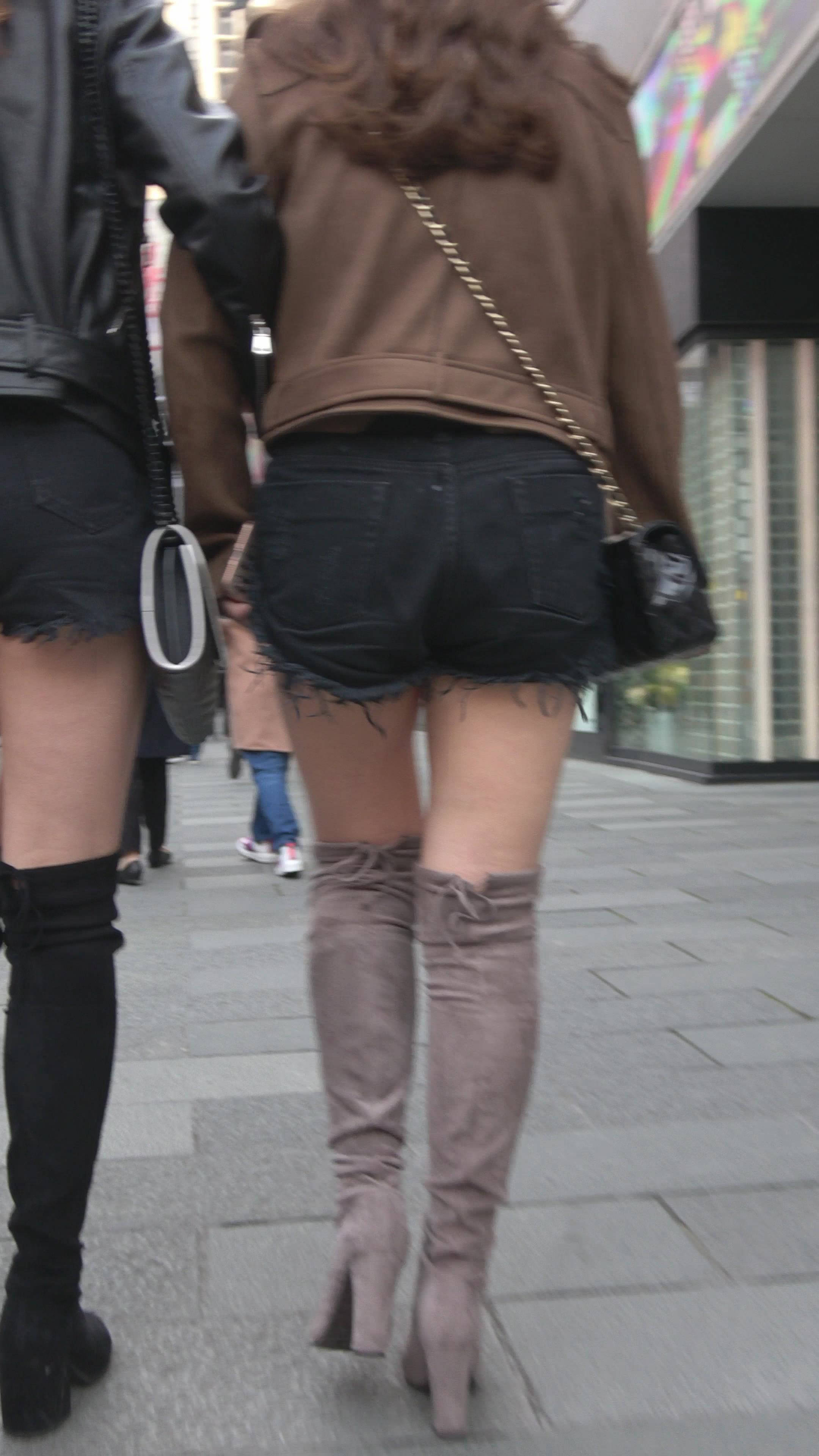 4K - 黑色口罩长筒靴超短热裤街拍美腿美女姐妹 编号7728 |