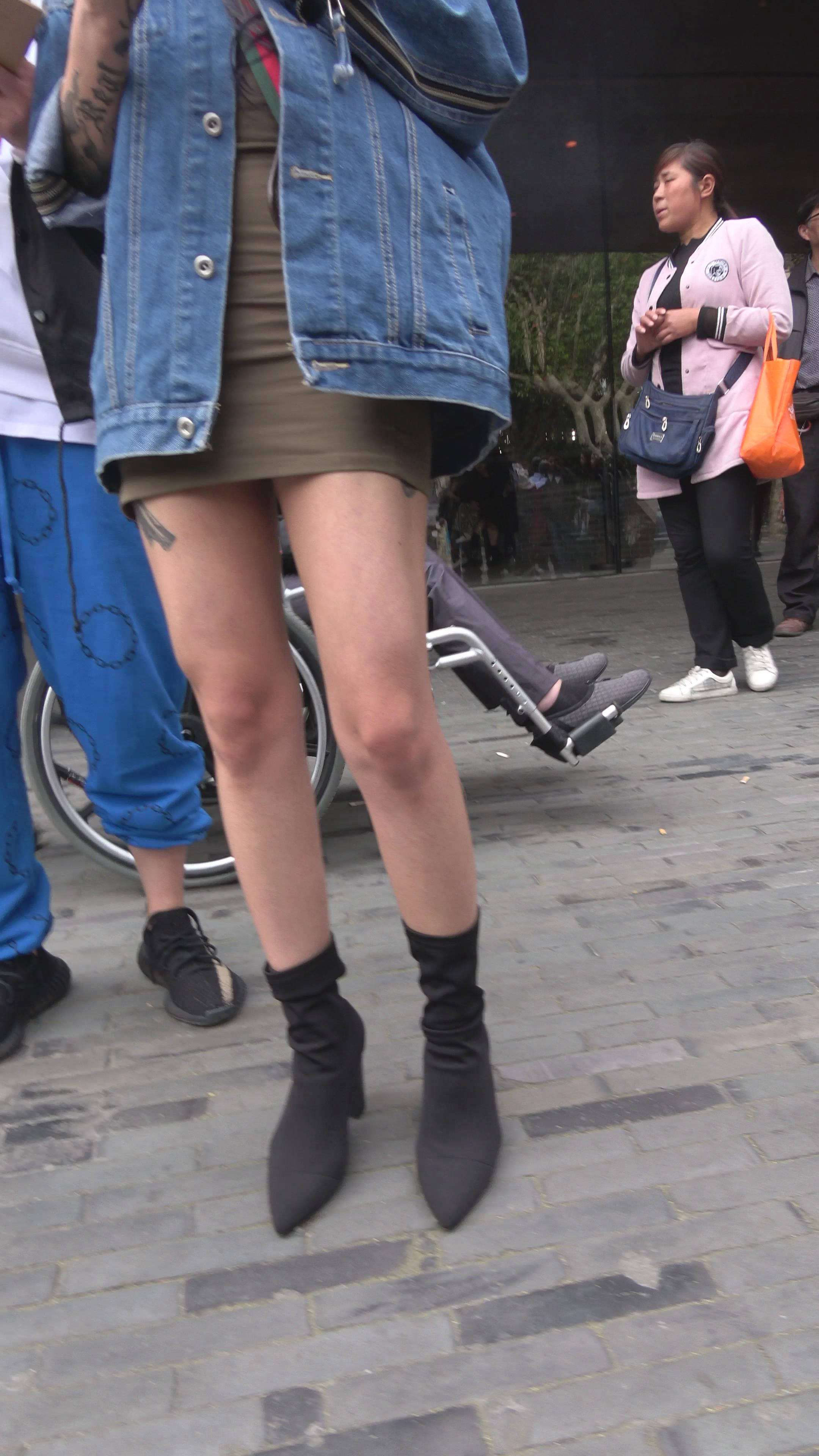 4K包臀裙牛仔外套街拍美腿小墨镜MM 编号7740 |