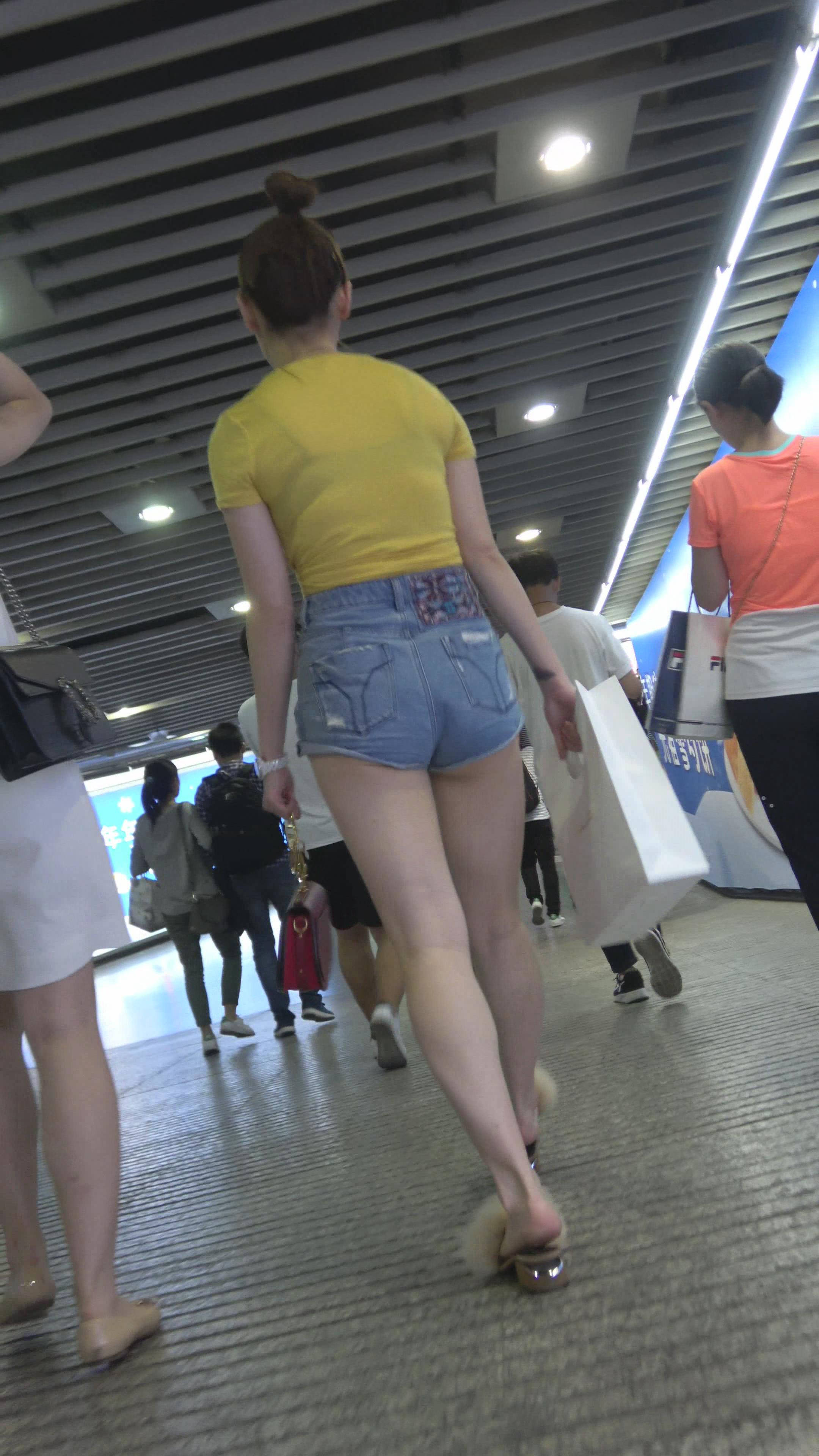 4K 黄色T恤高腰热裤街拍美臀丸子头小姐姐 编号7777 |