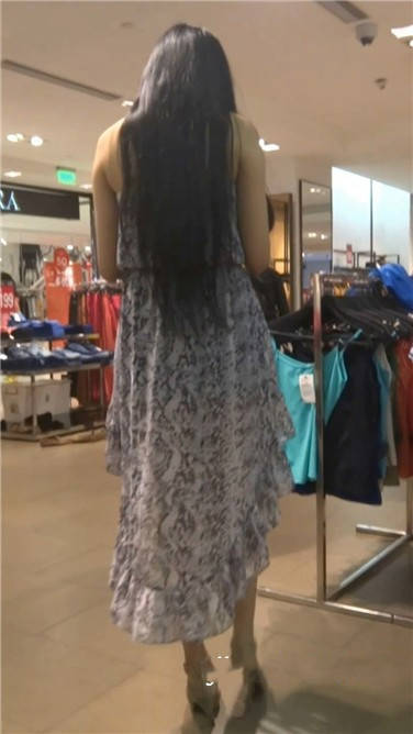 高挑性感连衣裙美女兴高采烈的挑衣服 编号3705 |
