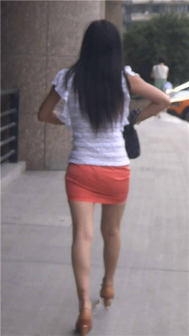 街拍高跟鞋橘色包臀裙性感美妇 编号3739 |