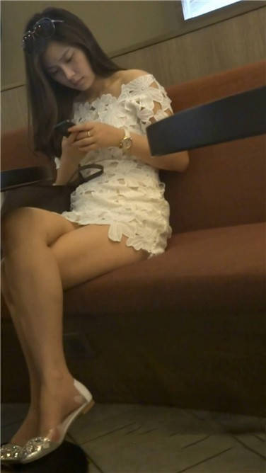 低头专注玩手机的白裙小姐姐 编号3780 |