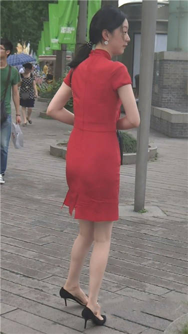 街拍大红色连衣裙尖嘴高跟鞋美颜少妇 编号3795 |
