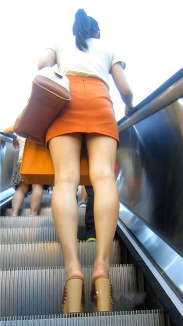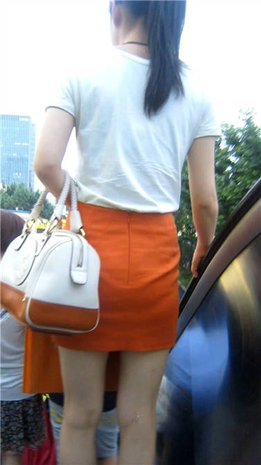 街拍苗条好身材橙色小短裙马尾辫小姐姐 编号3895 |