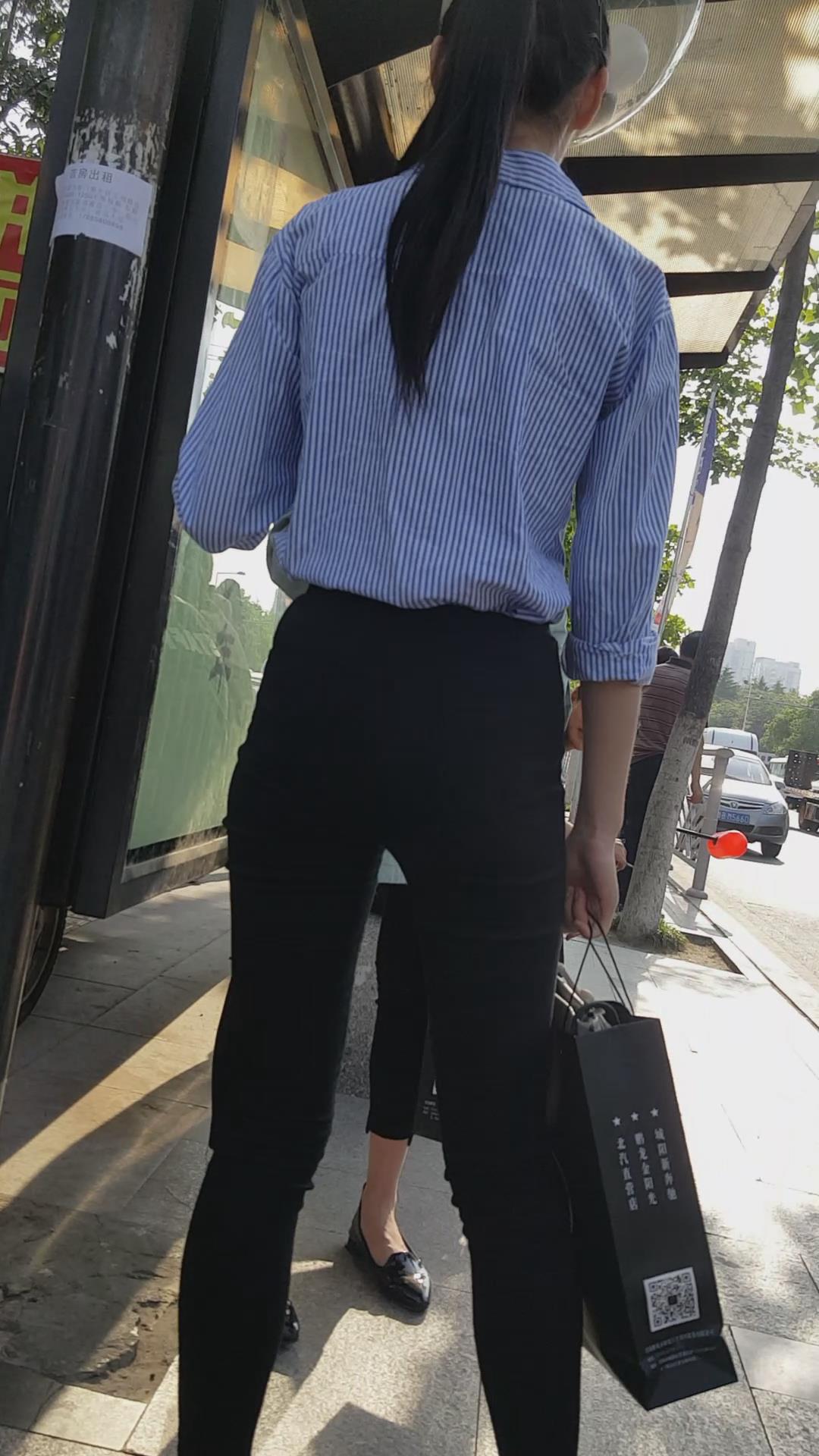 清新脱俗黑色紧身裤蓝衬衫美女编号3923 |