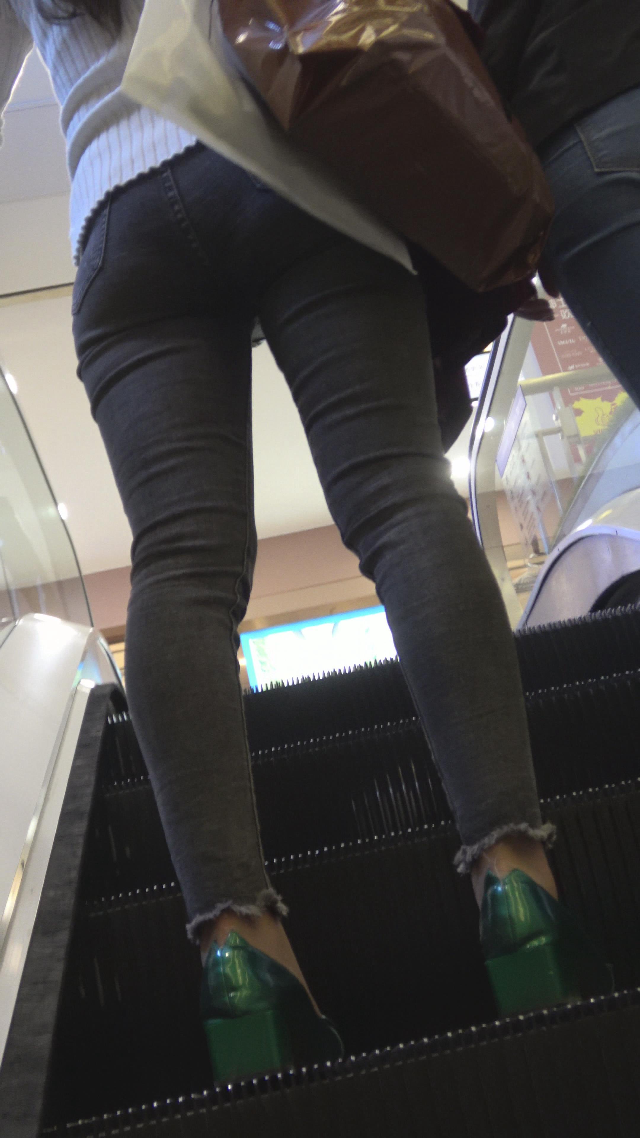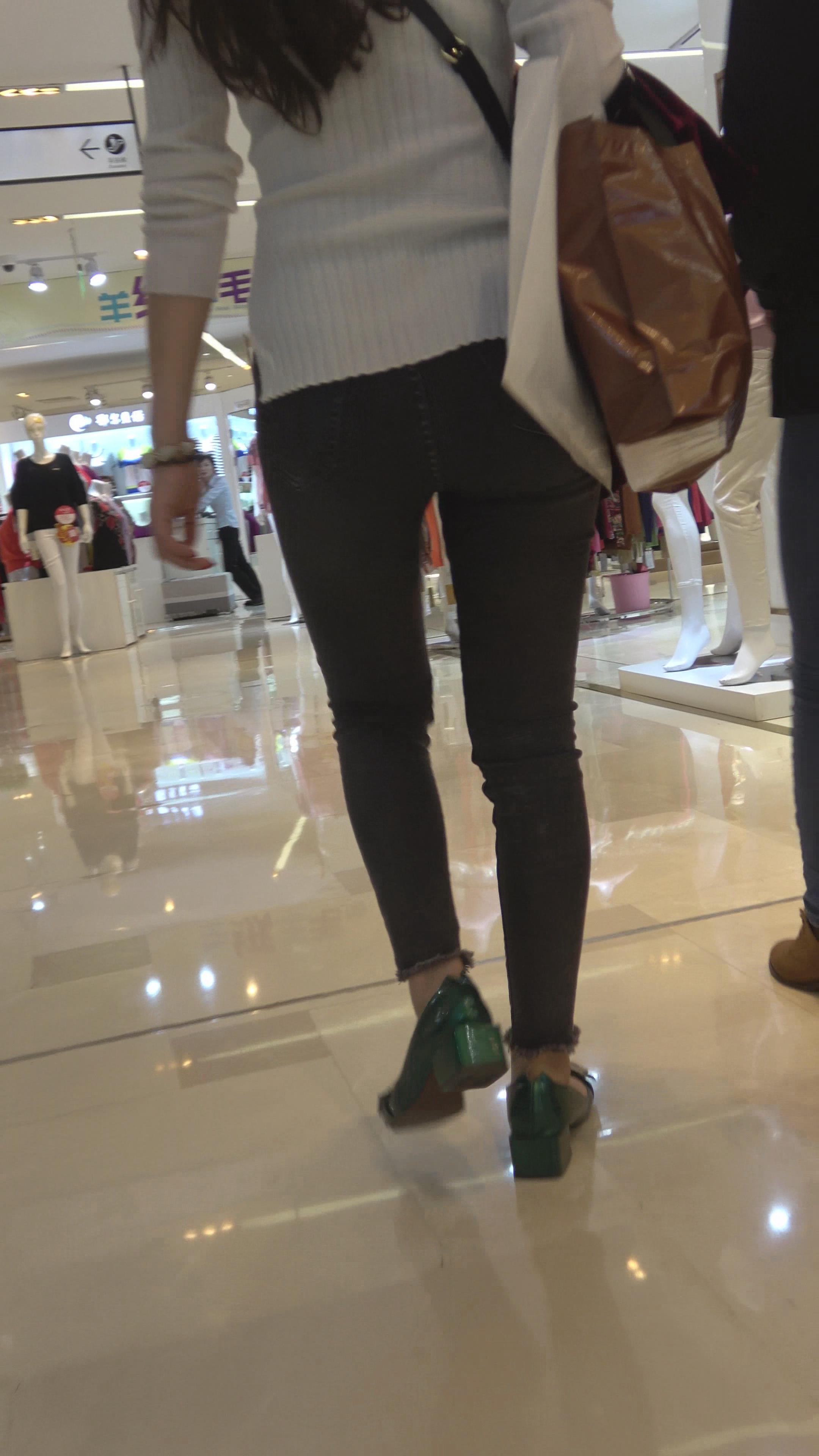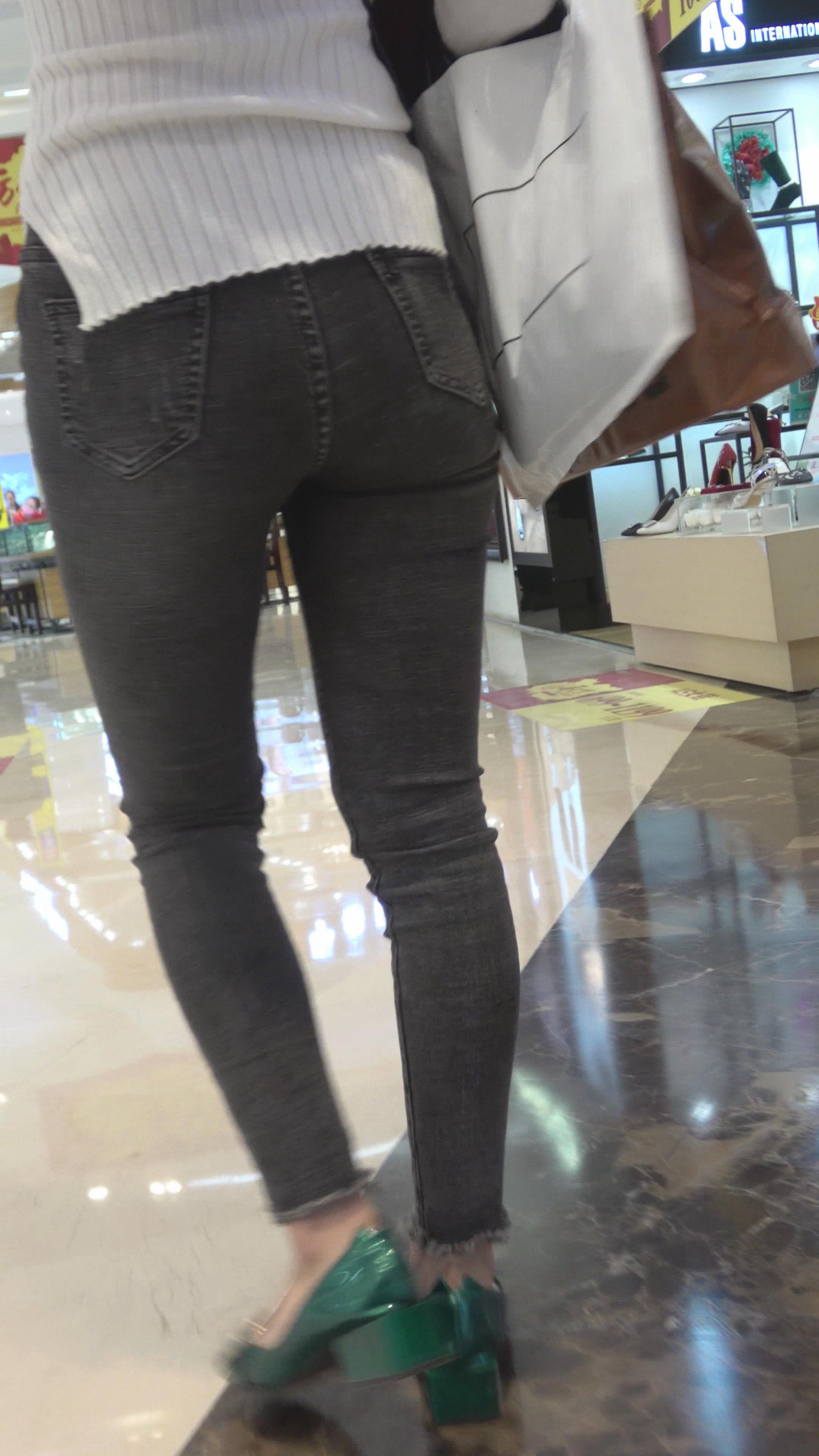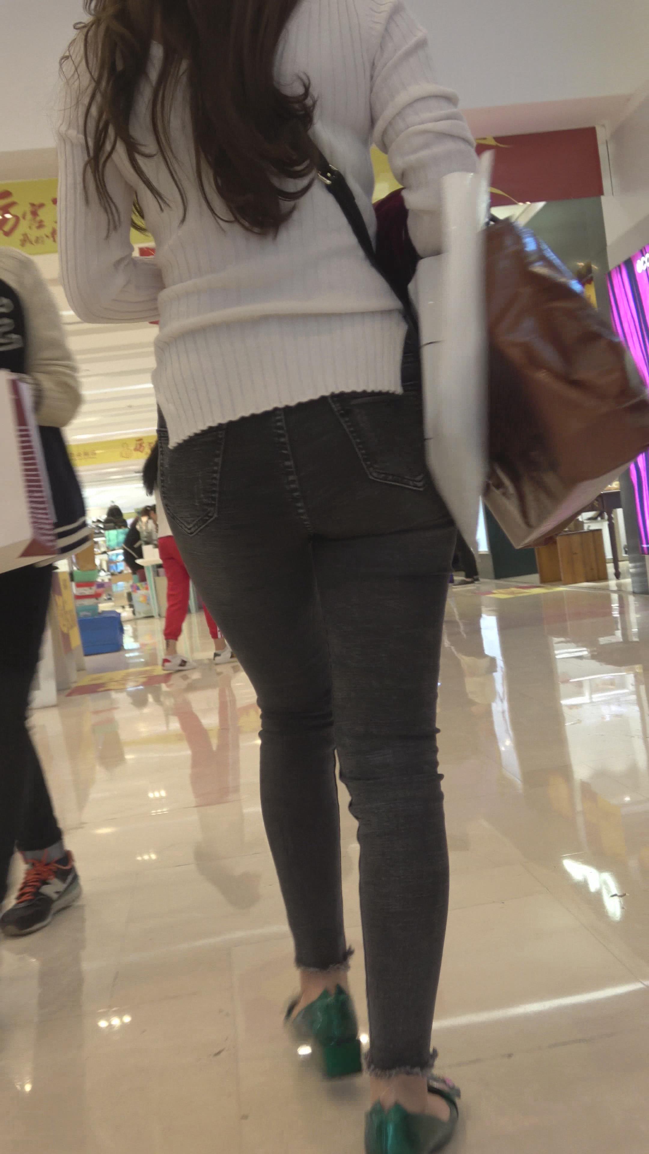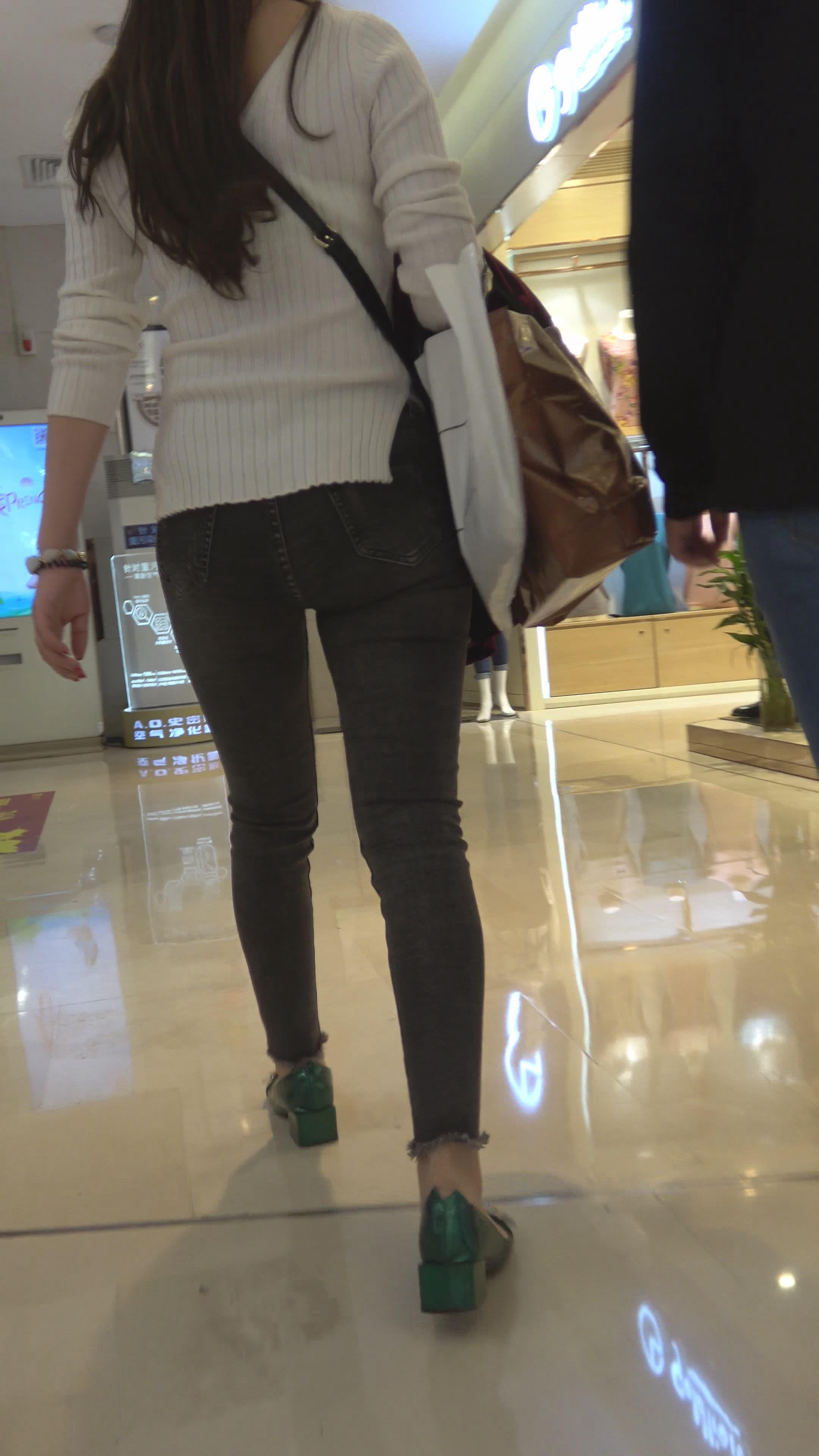 4K 白色毛衣灰色紧身牛仔裤街拍美女姐姐 编号5227 |