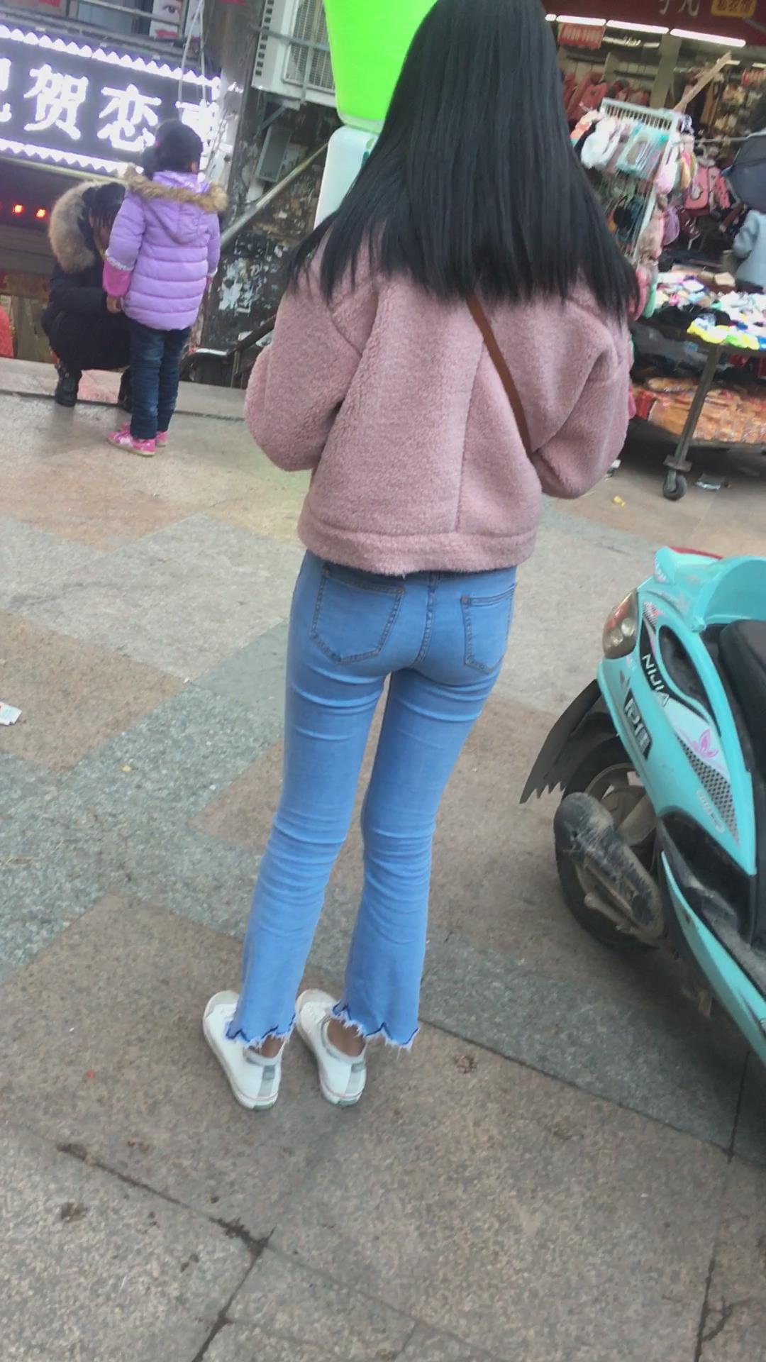 超紧身牛仔裤圆臀街拍美眉 编号5287 |