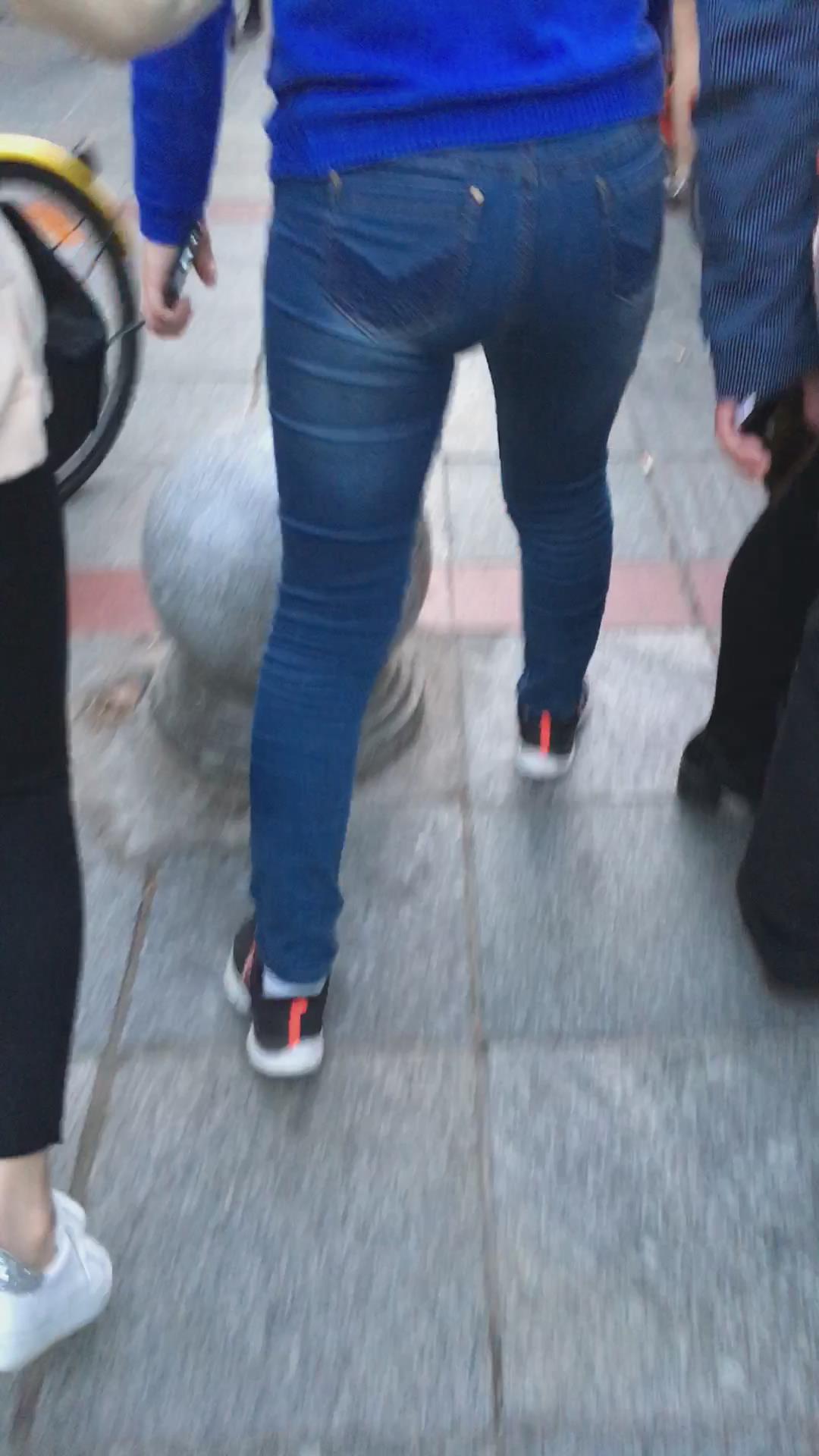 蓝色毛衣街拍紧身牛仔裤圆臀少妇 编号5293 |