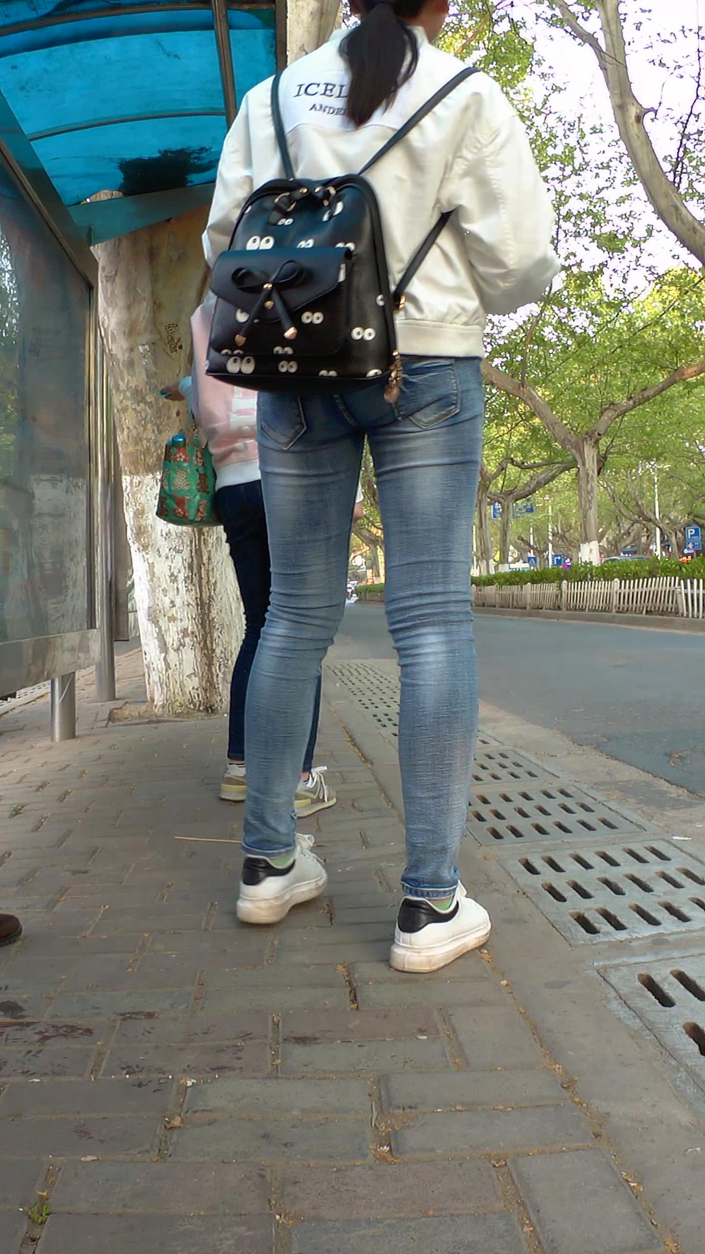 紧身牛仔小美女公交站等车 编号5302 |