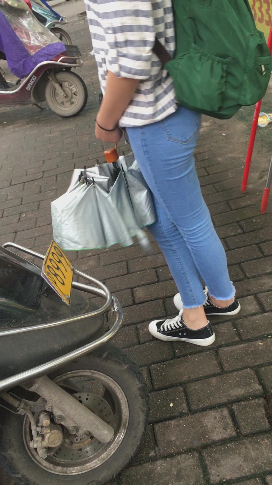 安静等公交的紧身蓝牛学生妹 编号5320 |