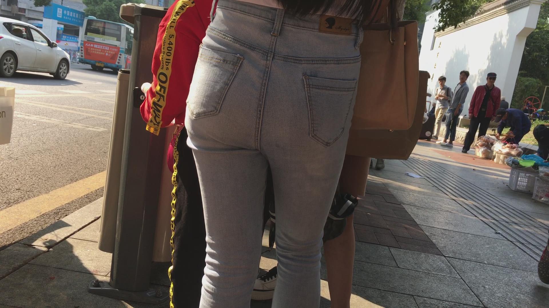 极品白T恤蓝色牛仔裤翘臀街拍美女 编号5330 |