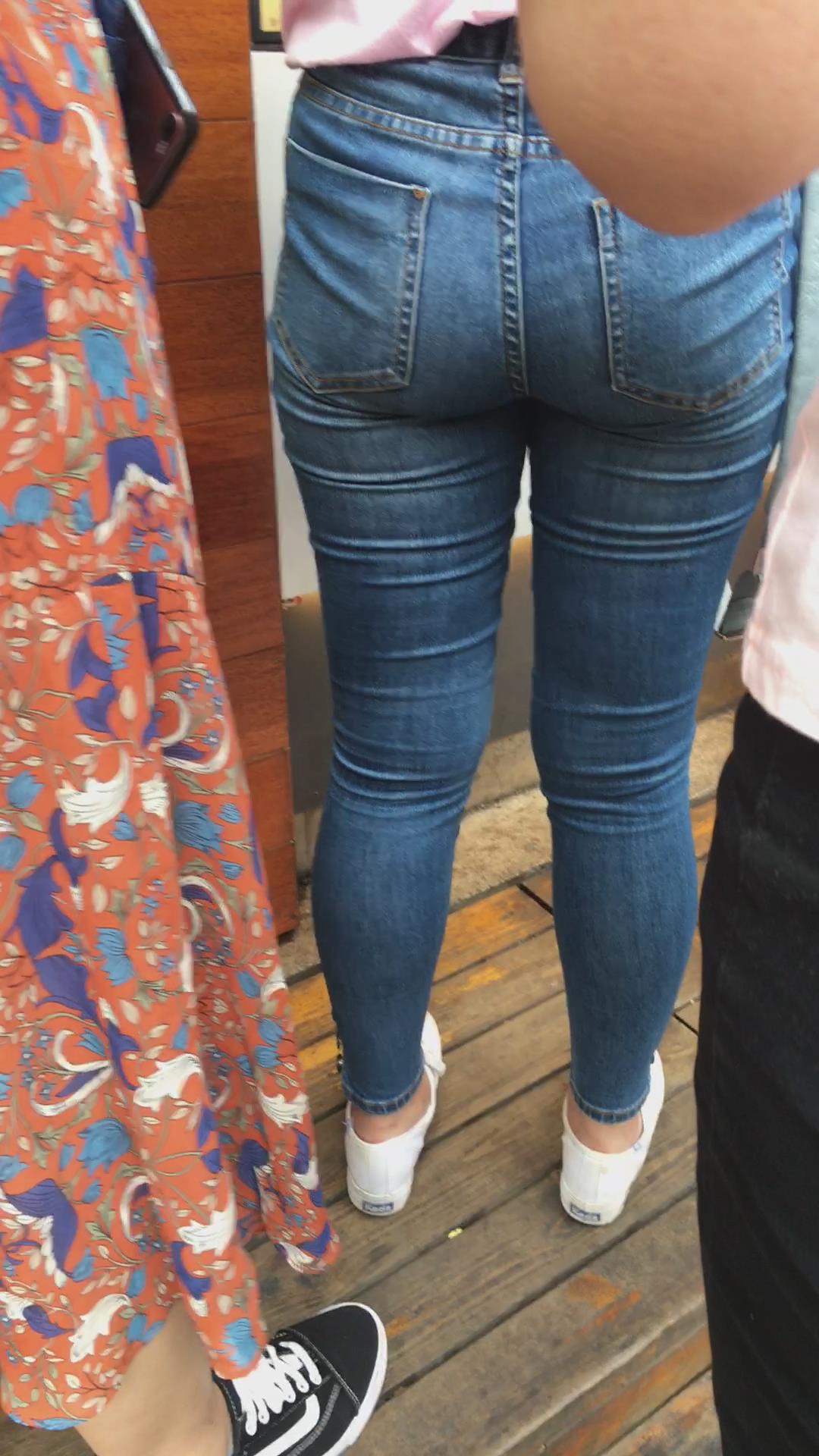 街拍紧致肉臀蓝色牛仔裤美女 编号5370 |