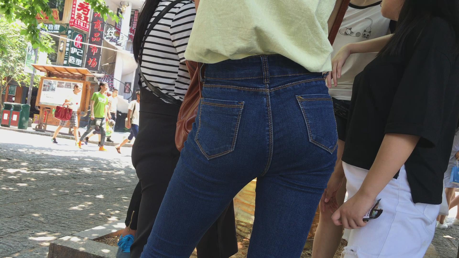 街拍的青春紧身蓝色牛仔裤妹子 编号5467 |