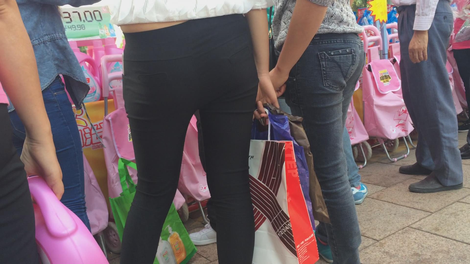 黑色紧身裤宽臀妹子在围观什么呢? 编号5547 |