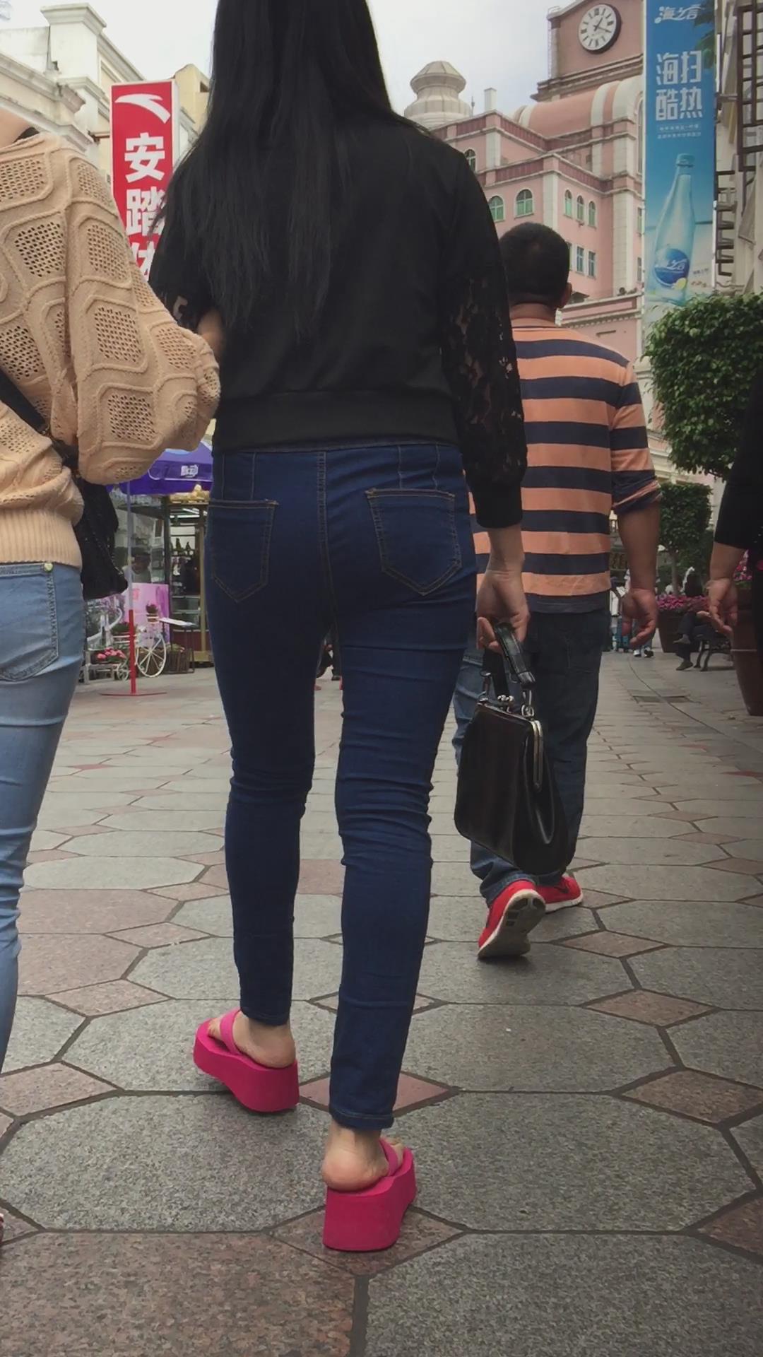 街拍红色松糕鞋紧身蓝牛翘臀妹子 编号5556 |