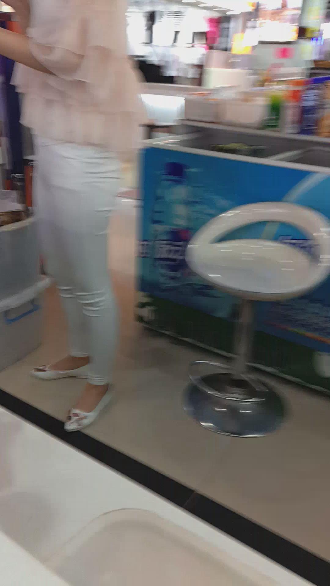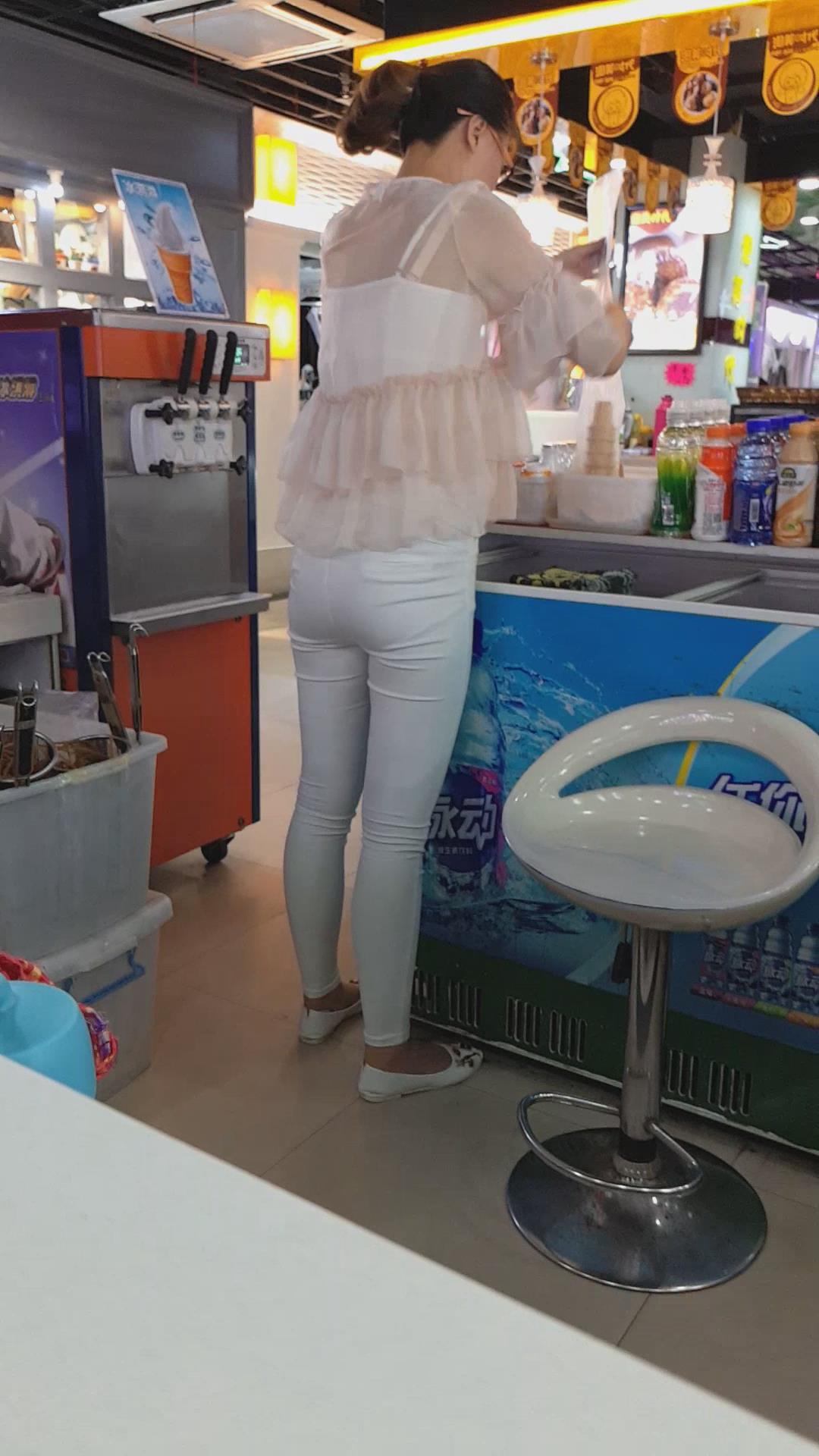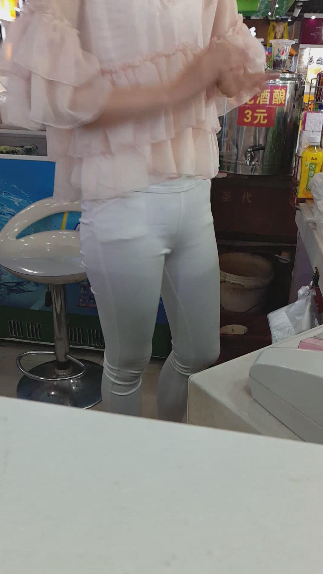 饱满美三角紧身白裤小超市老板娘 编号5569 |