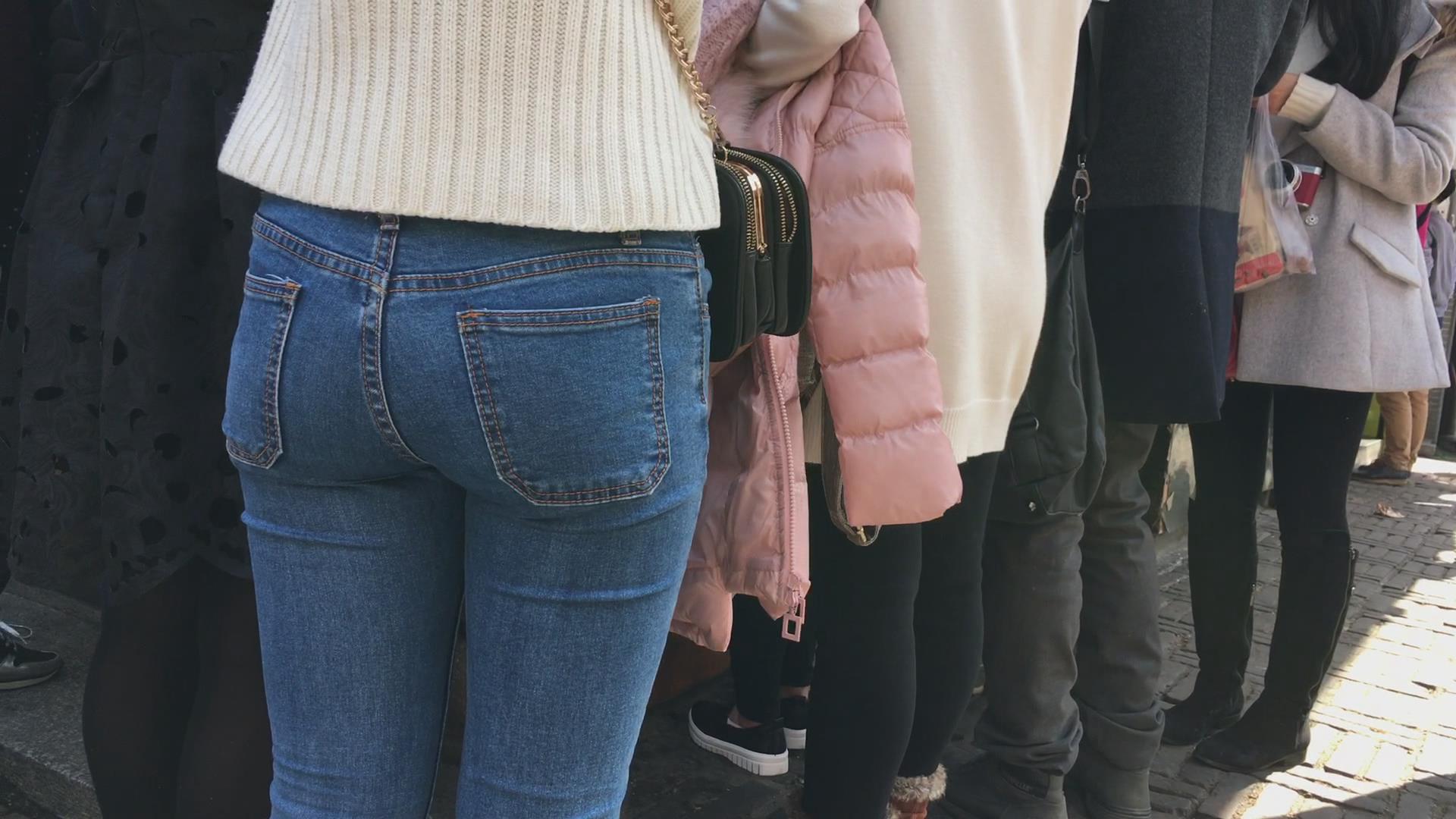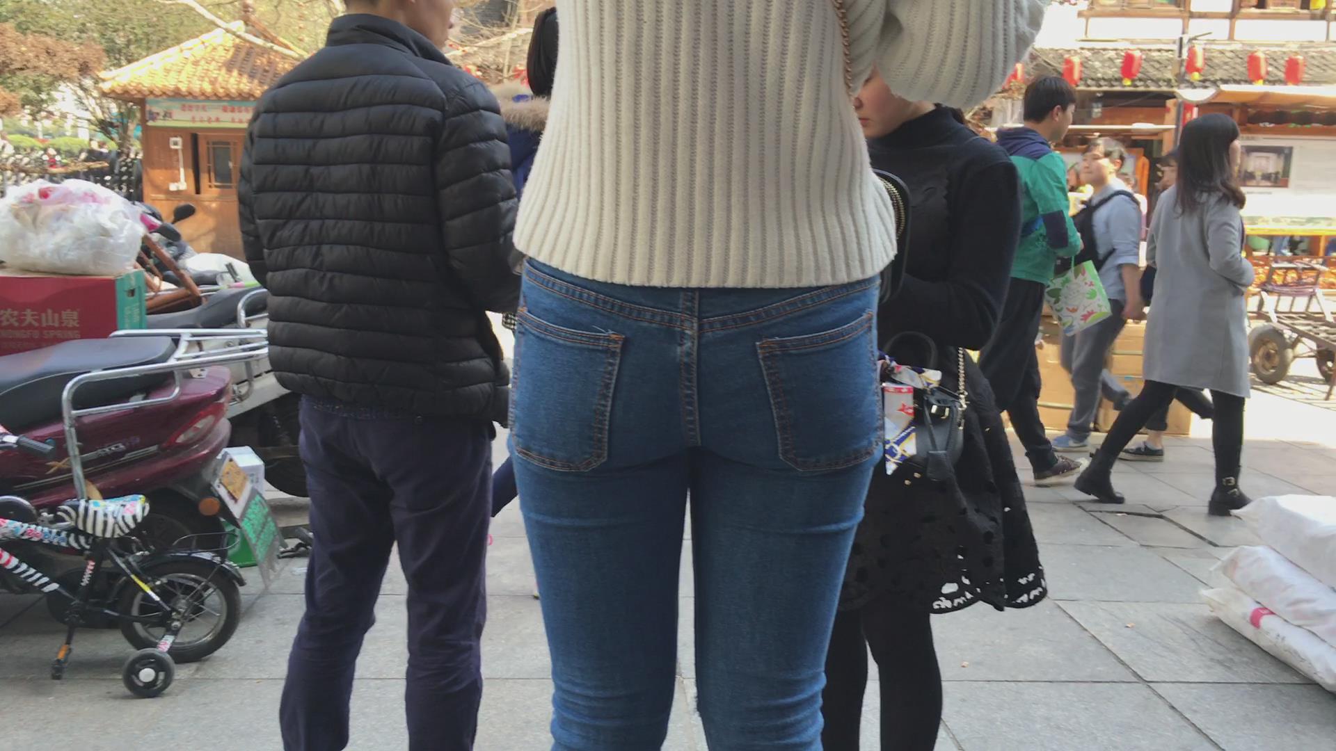超紧身蓝色牛仔裤清秀美女 编号5645 |