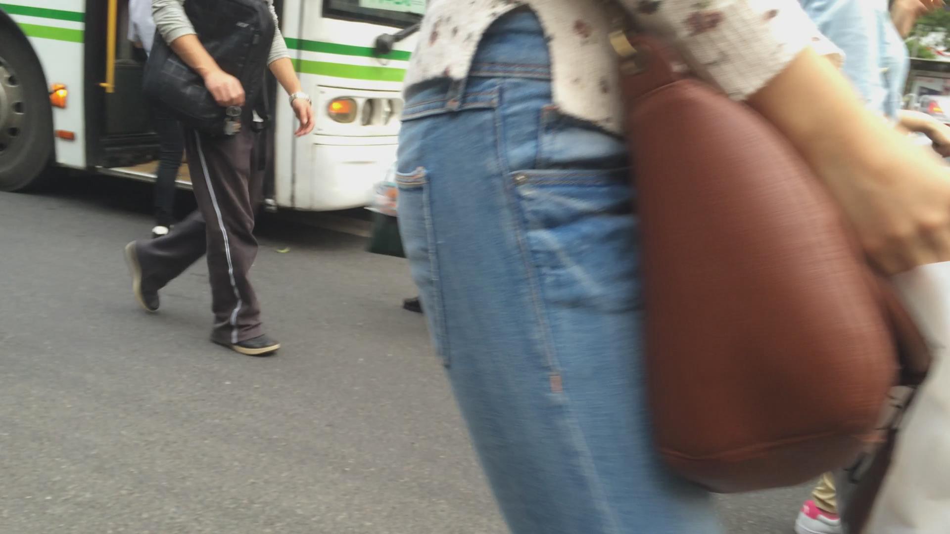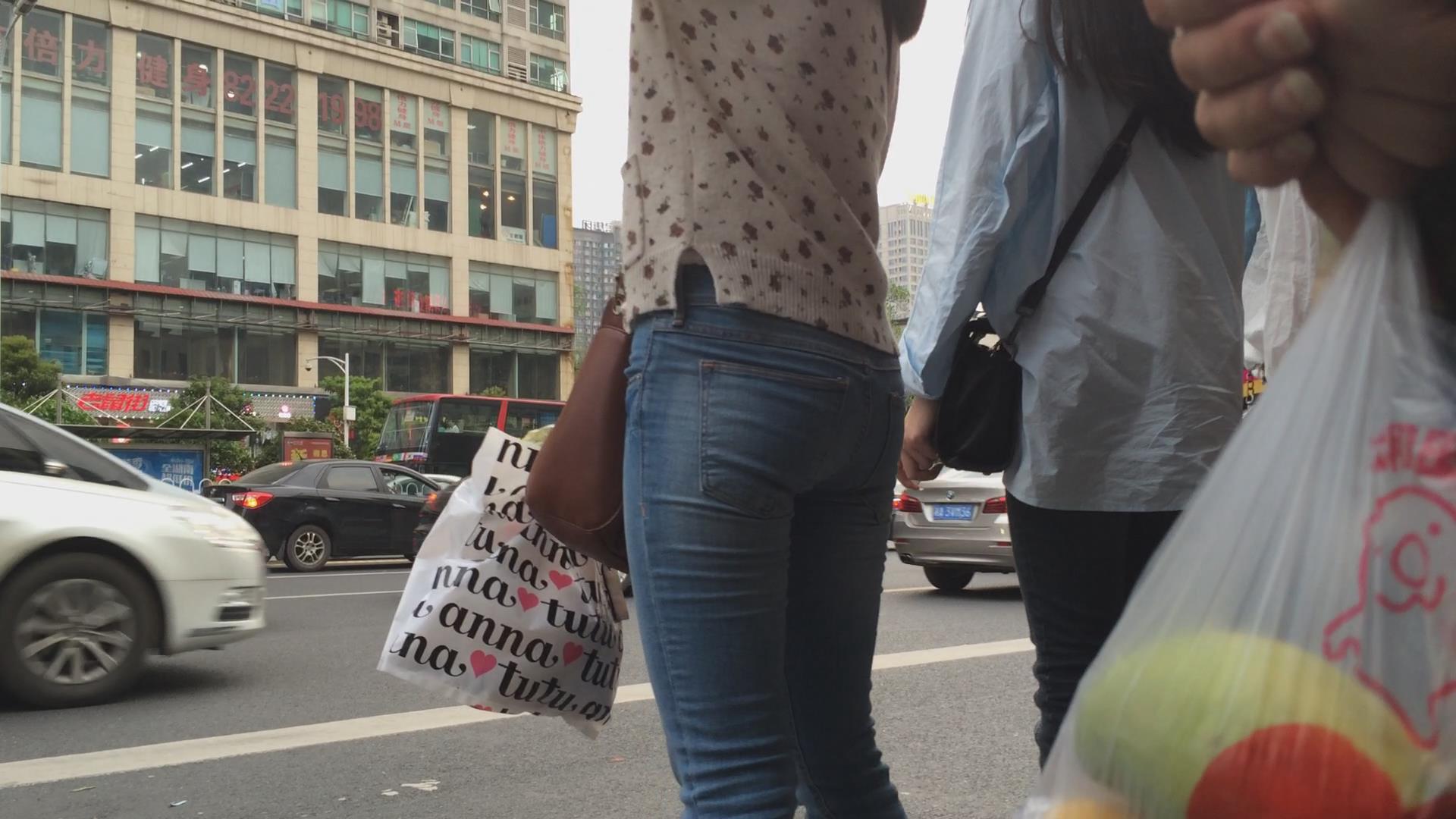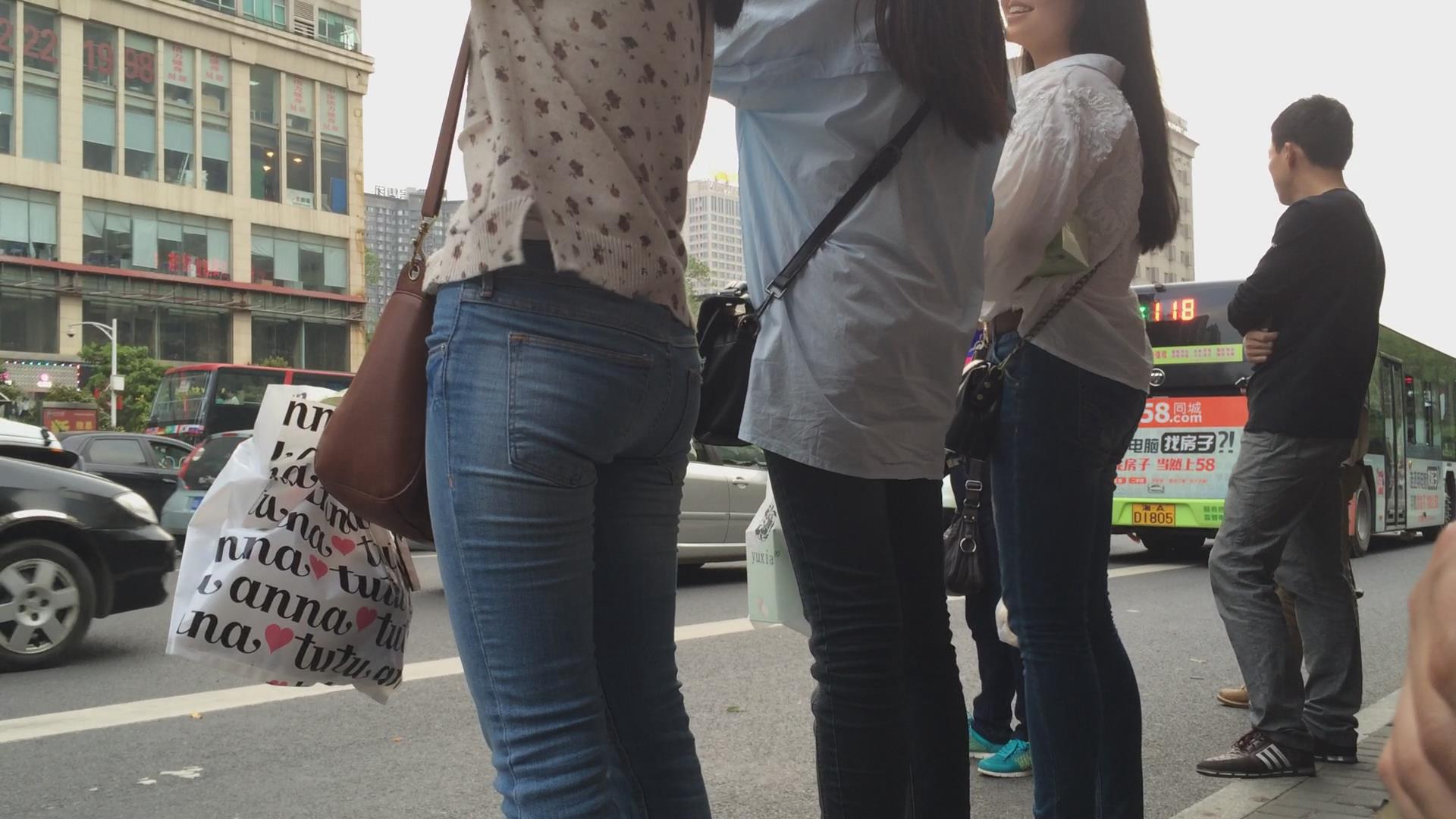 紧致蓝色牛仔裤美女等公交 编号5648 |