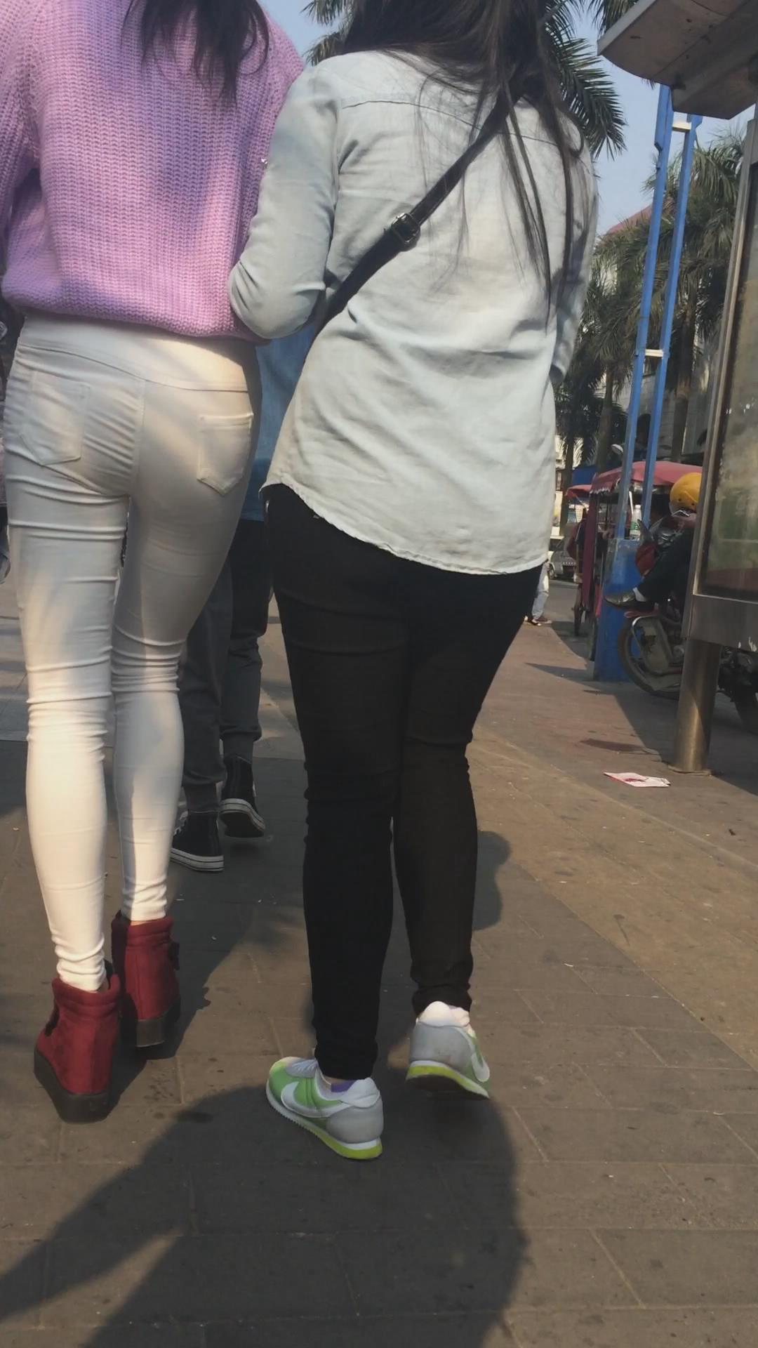 街拍粉衣紧身白裤苗条清秀美女 编号5659 |