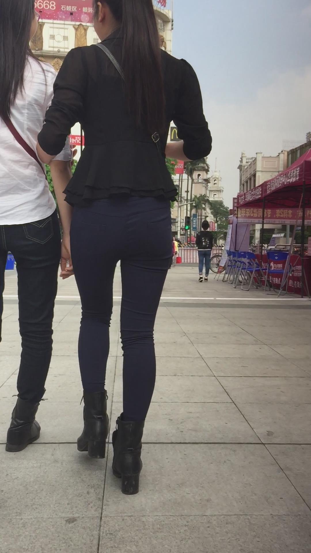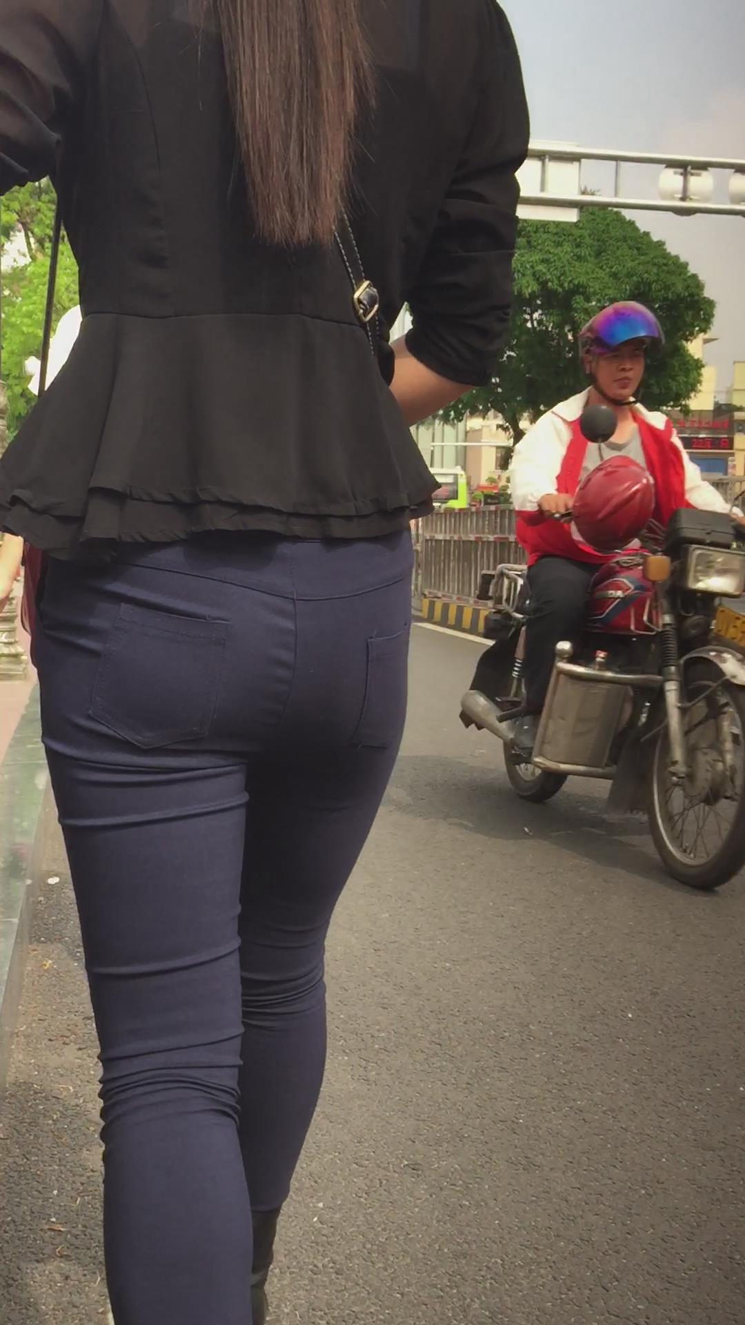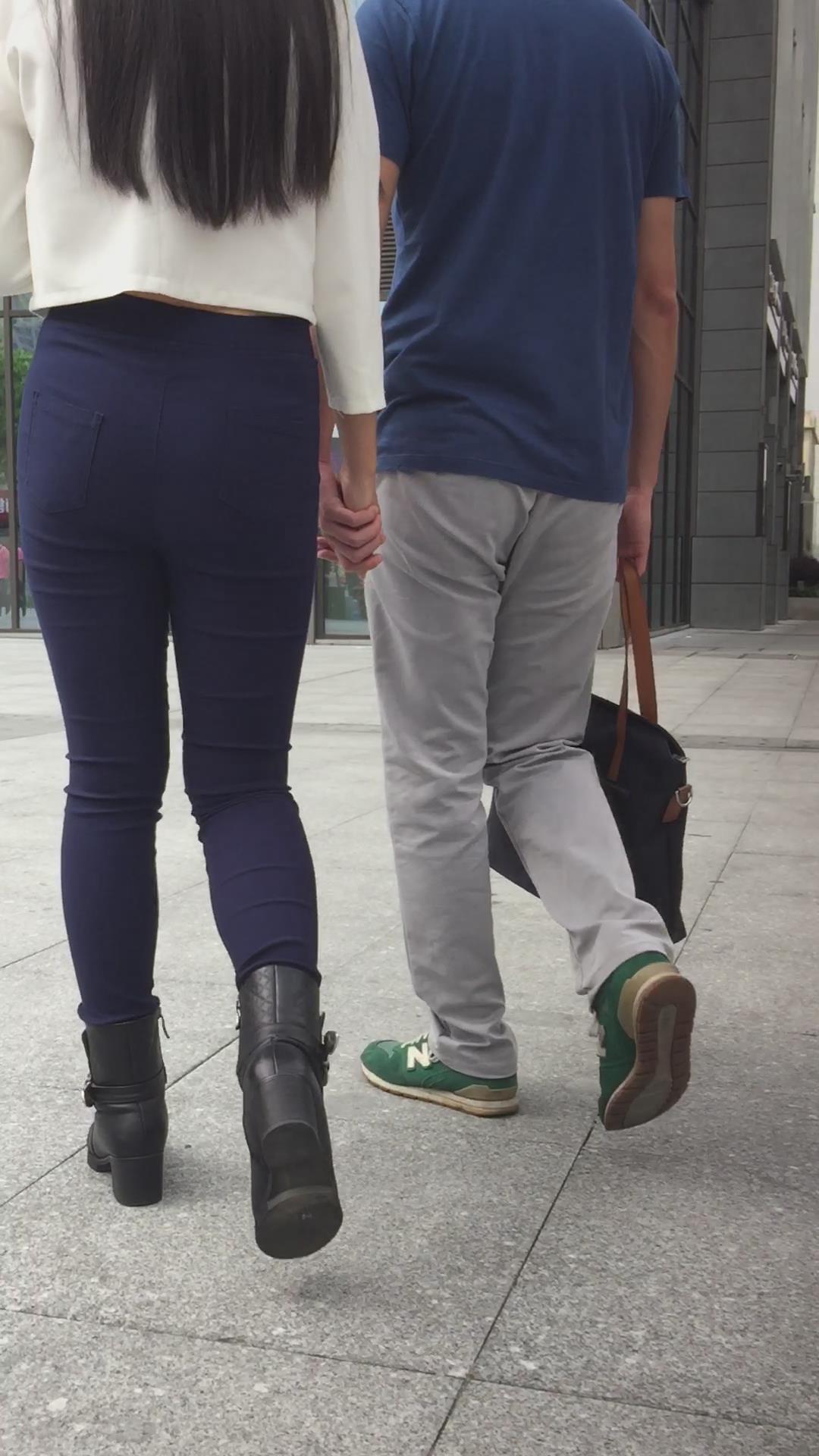 圆臀深蓝色紧身牛仔裤美女,跟男友压马路 编号5717 |