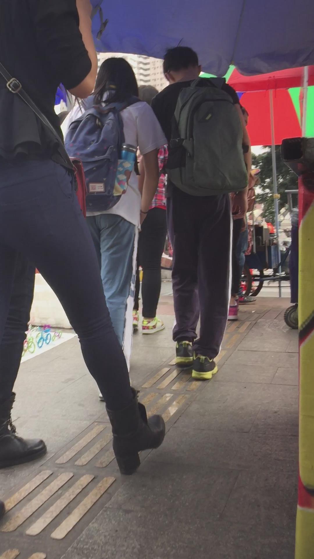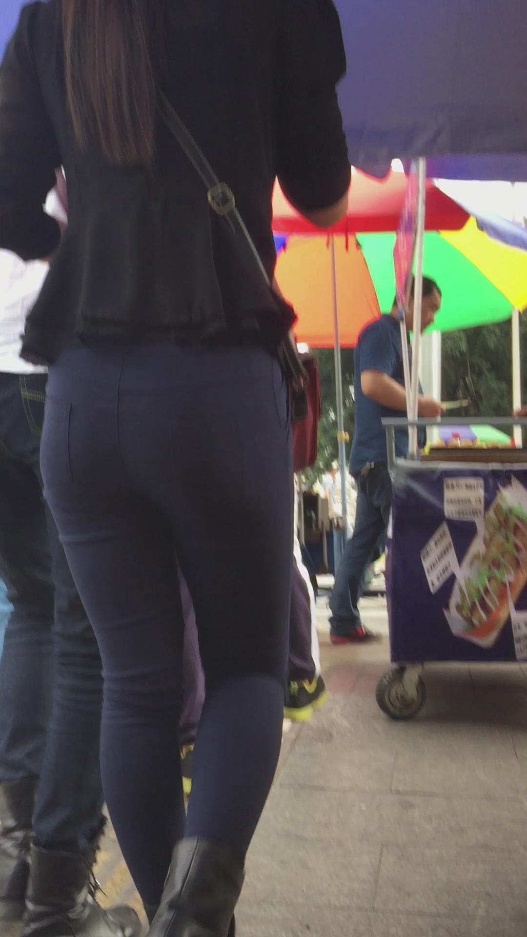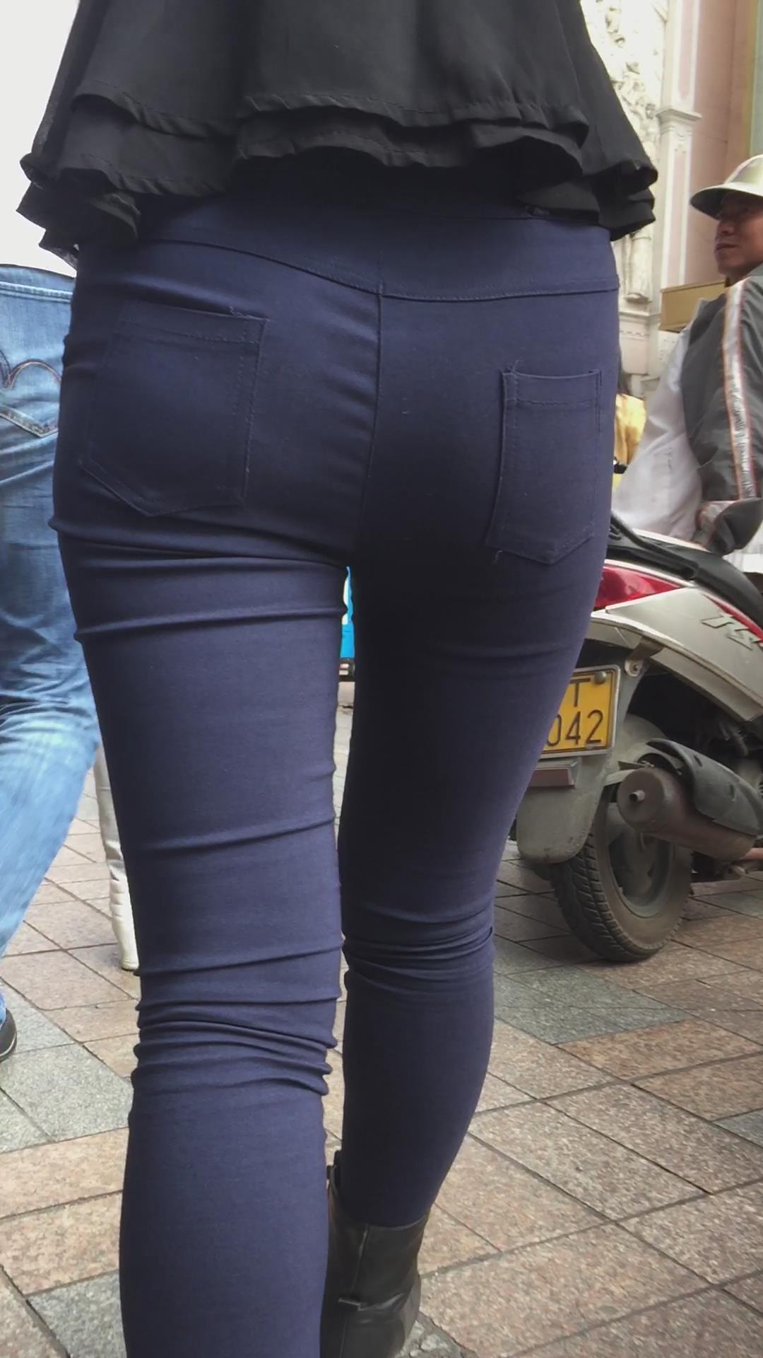 圆臀深蓝色紧身牛仔裤美女,跟男友压马路 编号5717 |