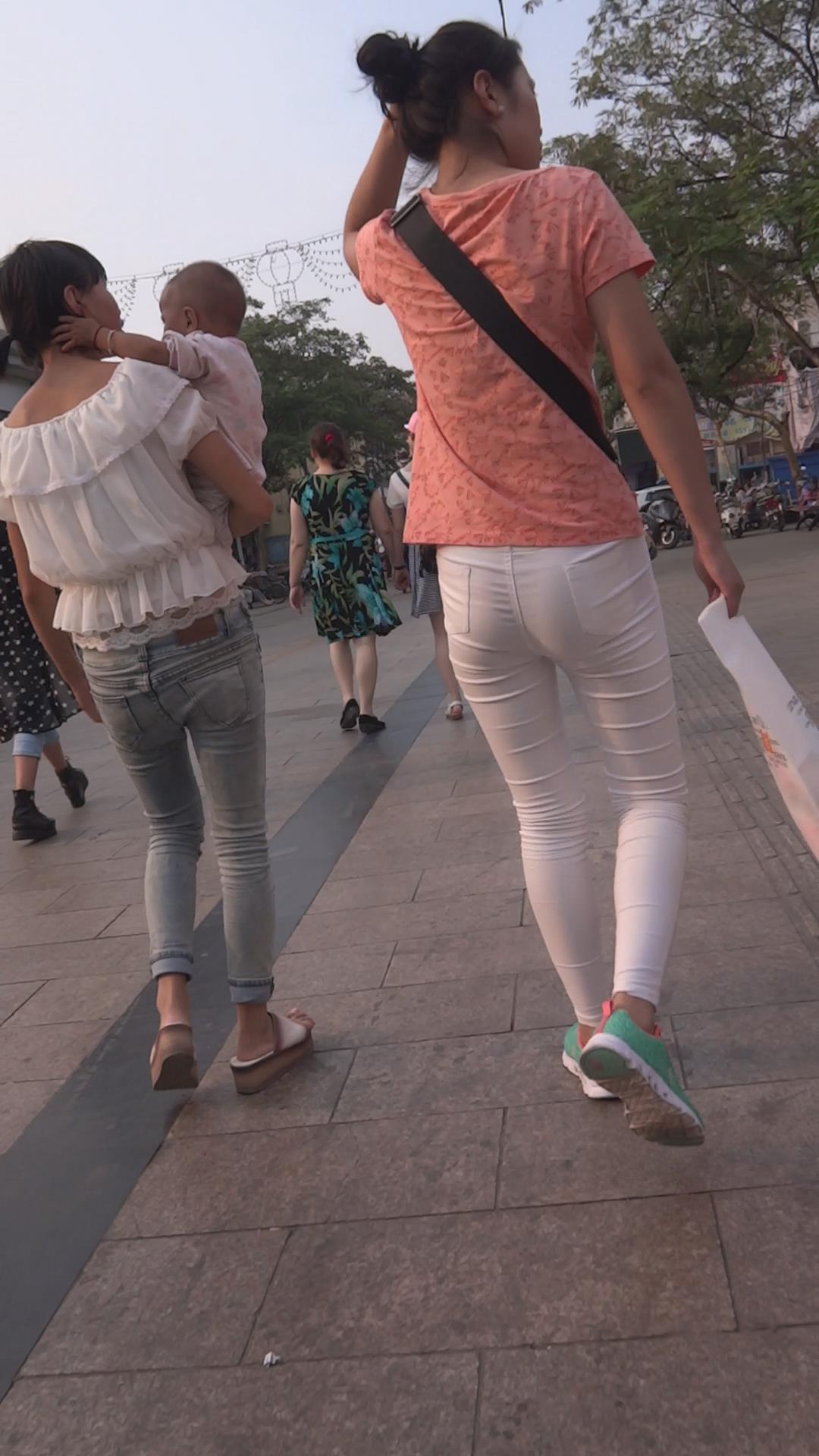 紧身白裤娇小身材丸子头美女 编号5861 |