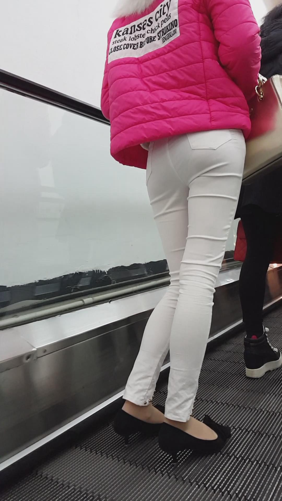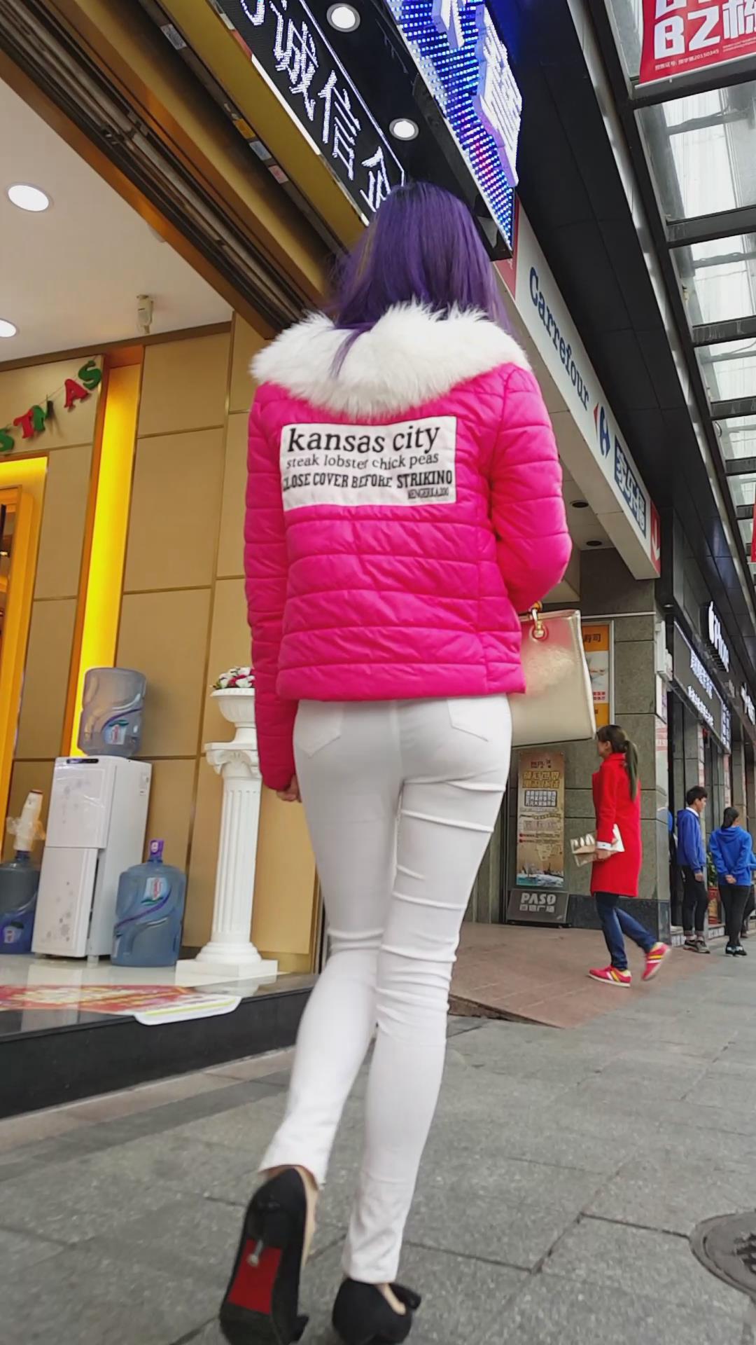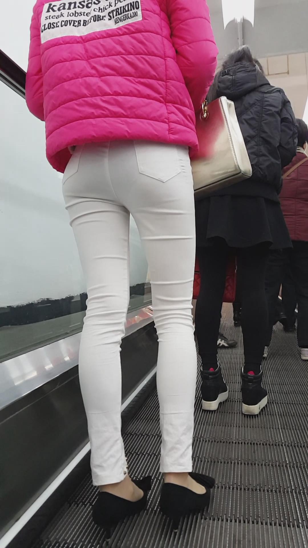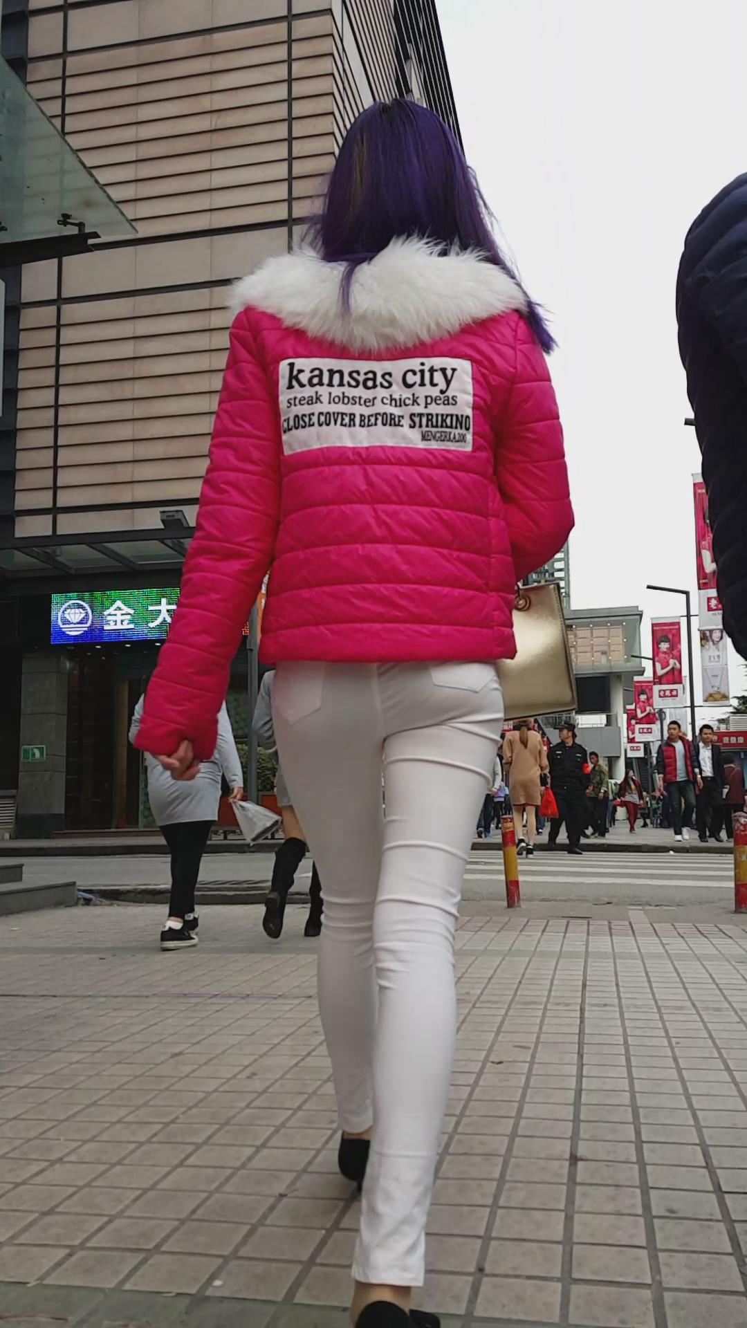 街拍白色紧身裤青春活力妹子 编号5958 |