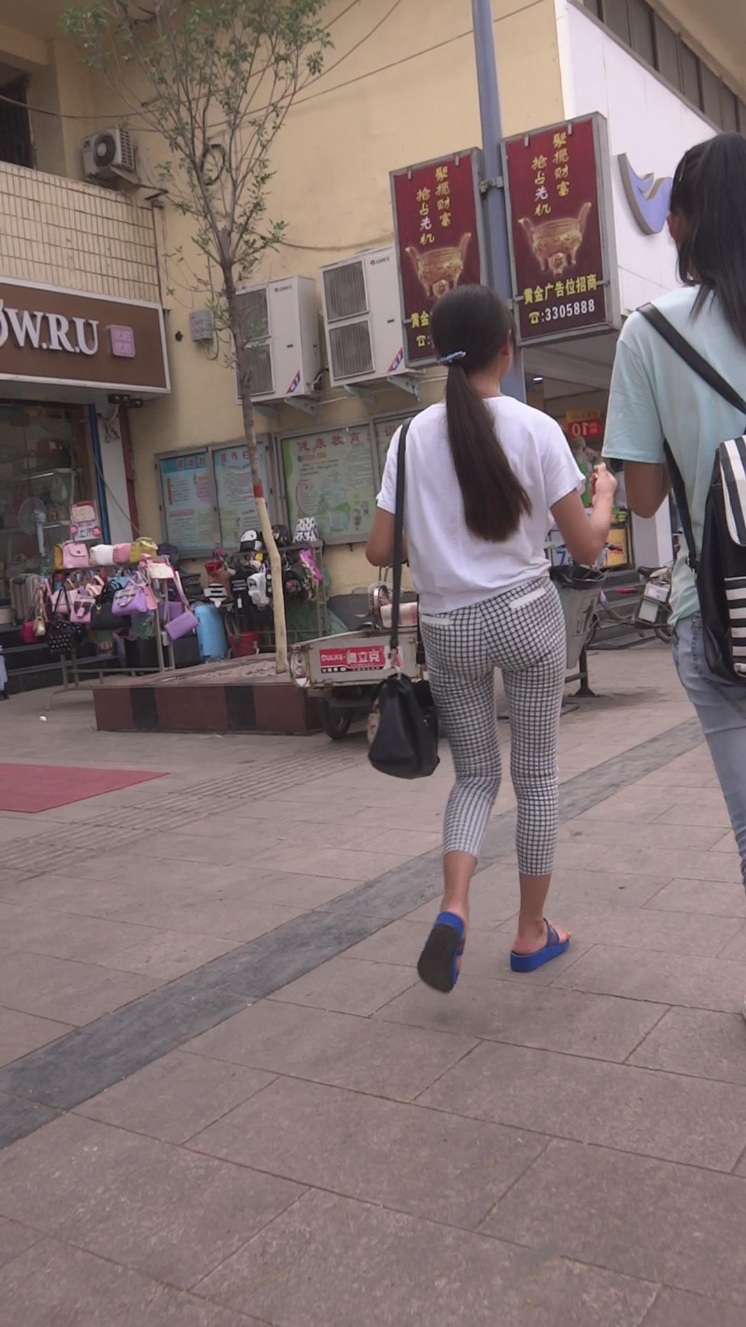 街拍的格子七分裤白T恤圆臀女孩。 编号5985 |