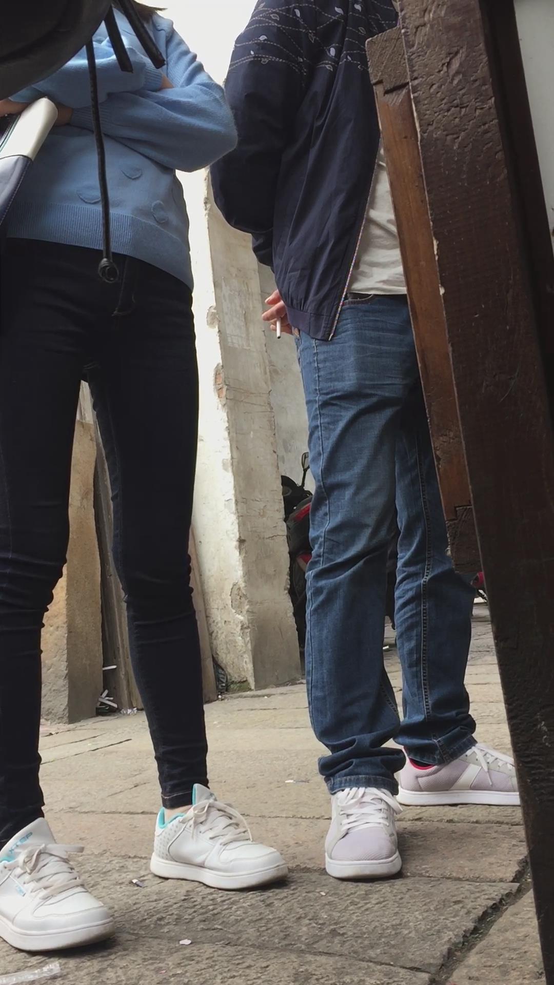 街拍紧身蓝牛运动鞋学生妹。 编号6038 |