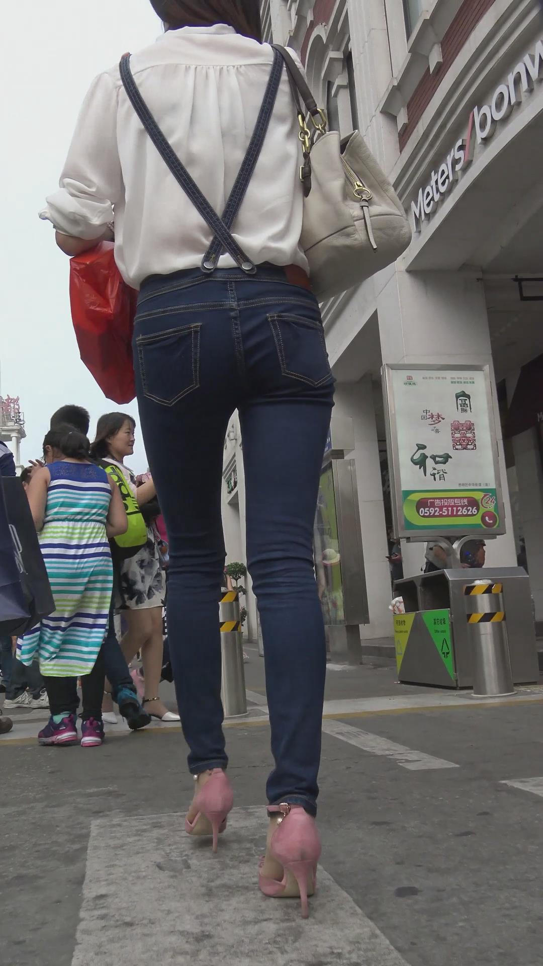街拍极品长腿背带牛仔裤粉高跟气质美女姐姐 编号6045 |