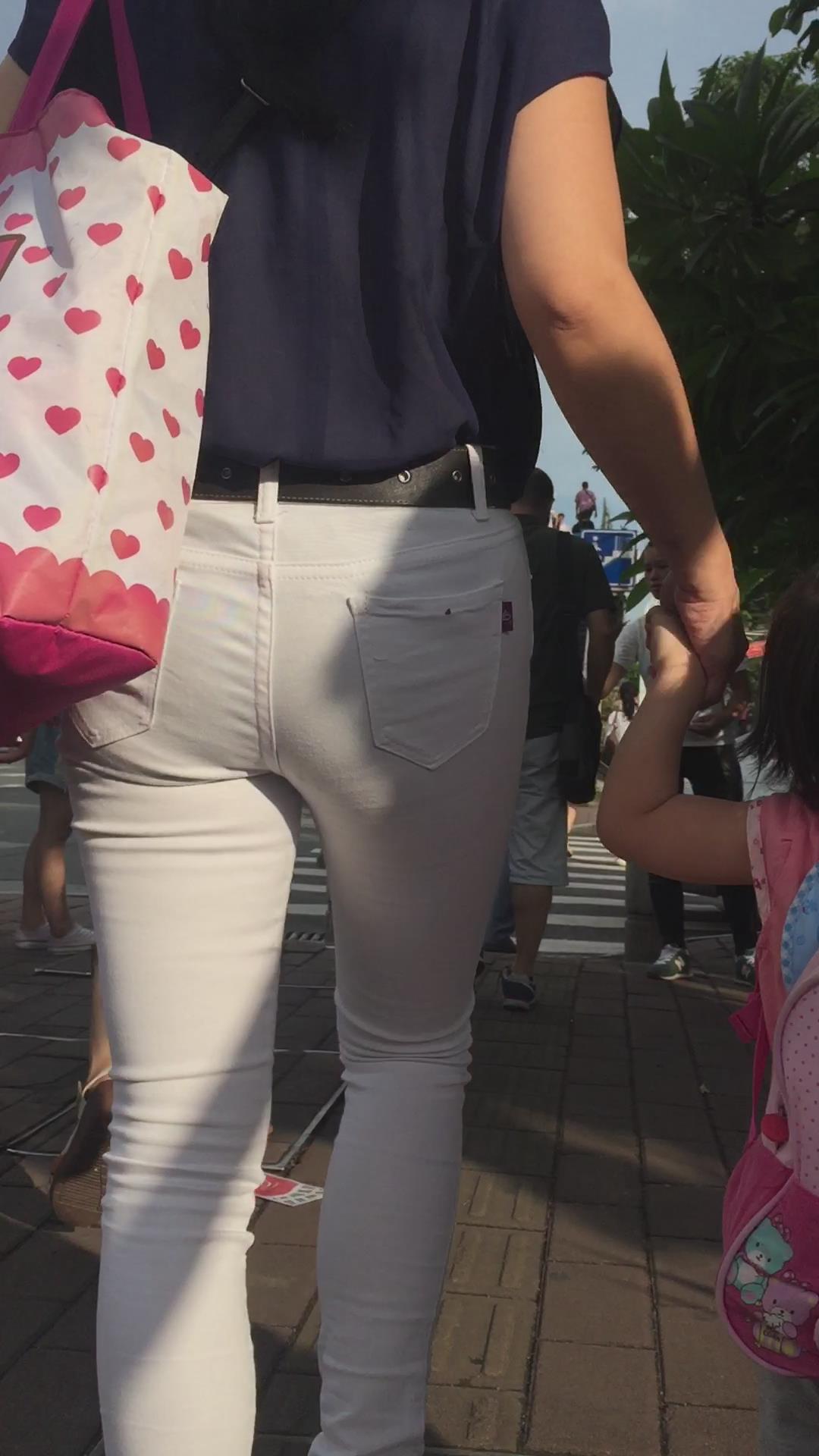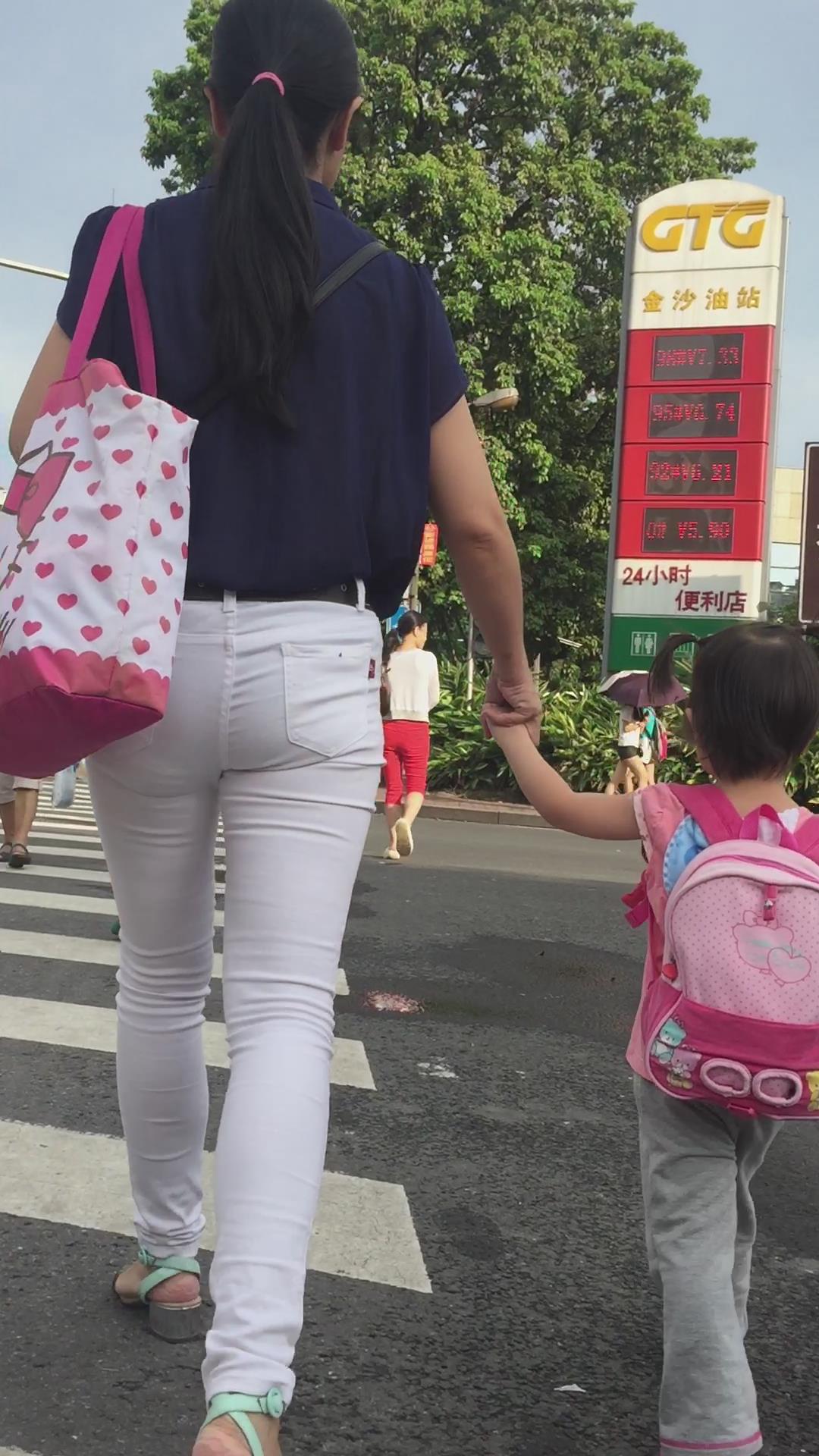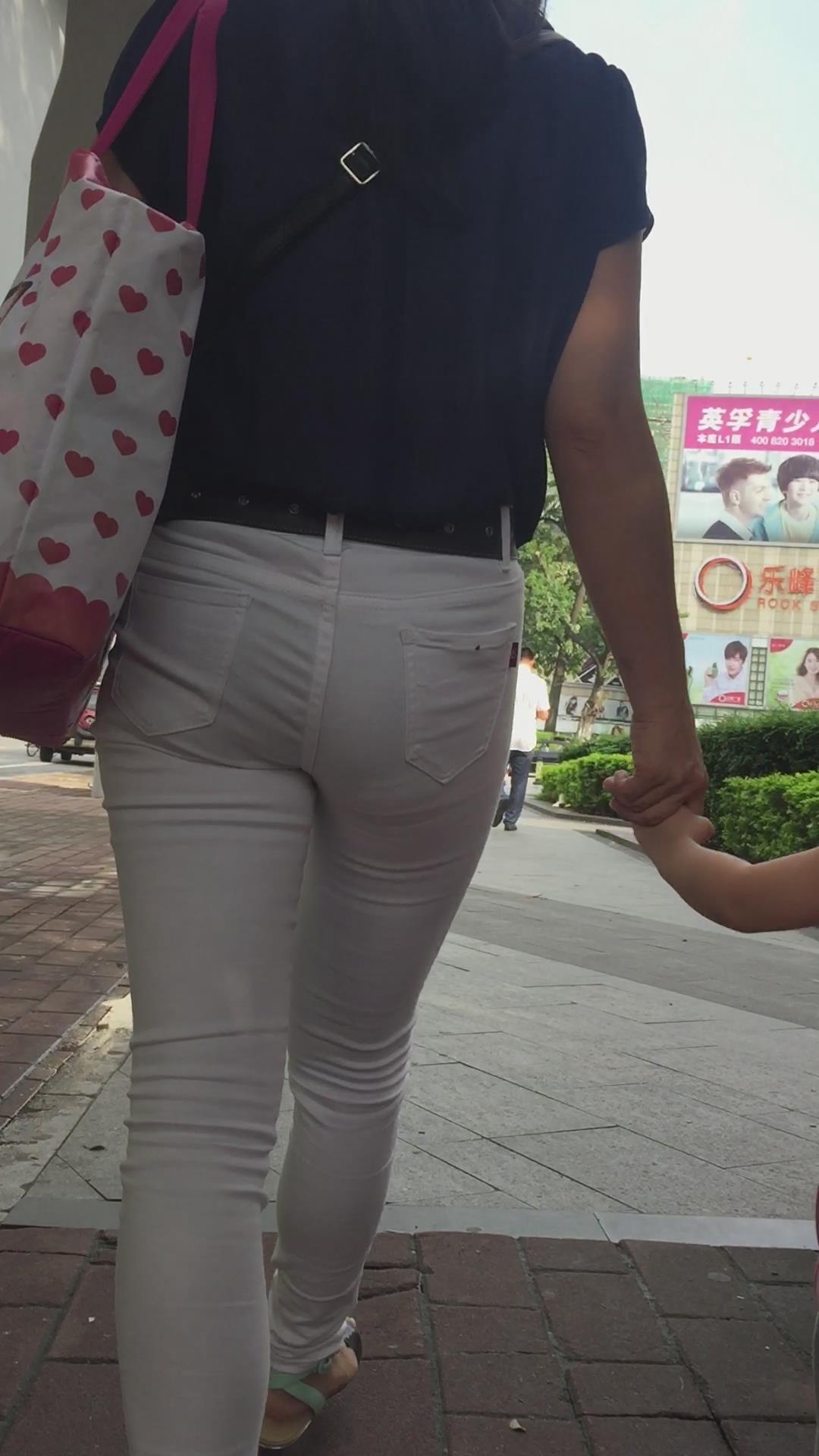 幼儿园刚接小孩回来的紧身白裤少妇 编号6056 |