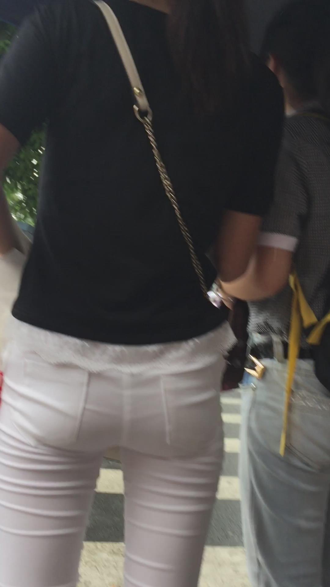街拍苗条紧身白裤小清新美女 编号6057 |
