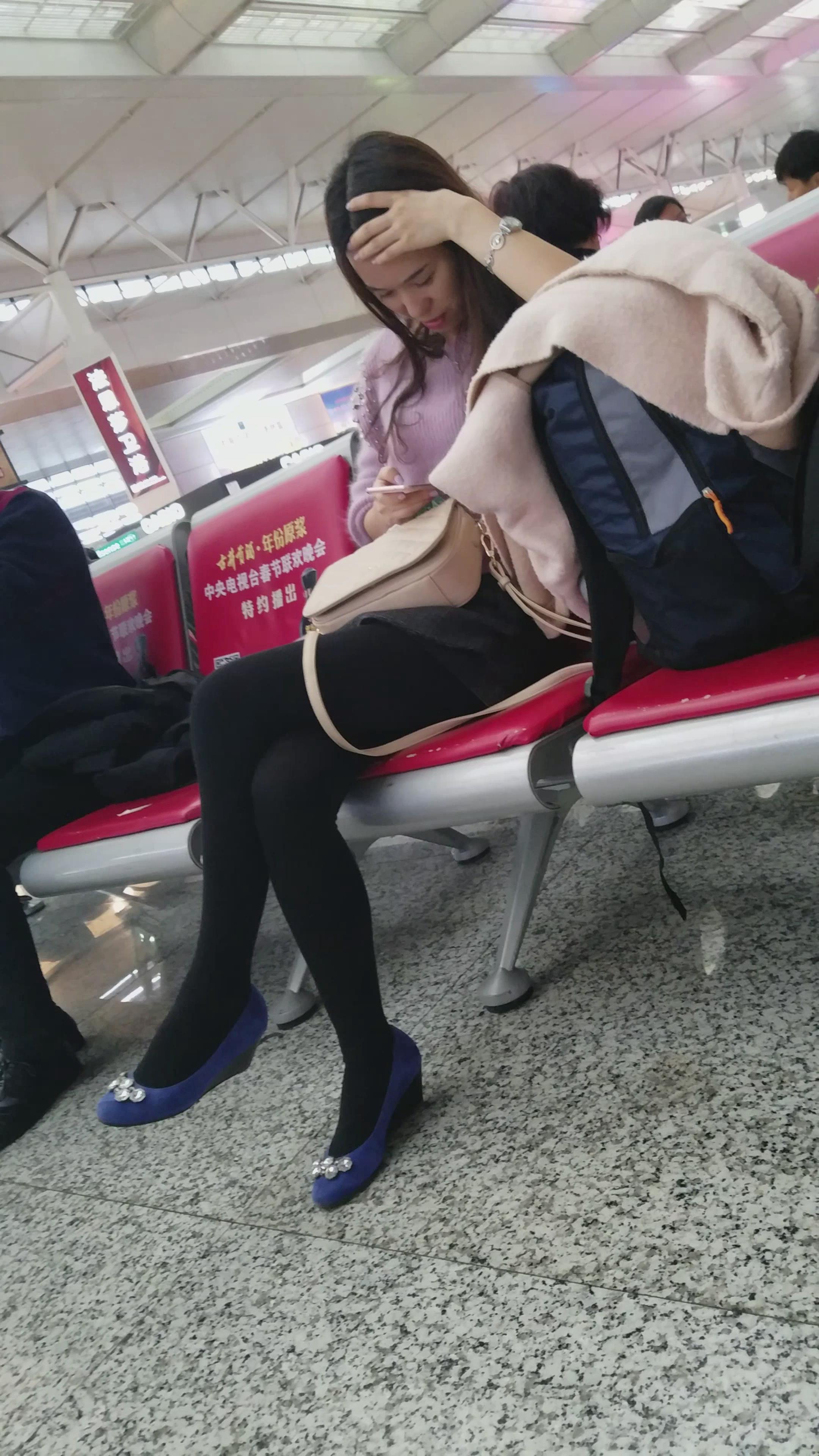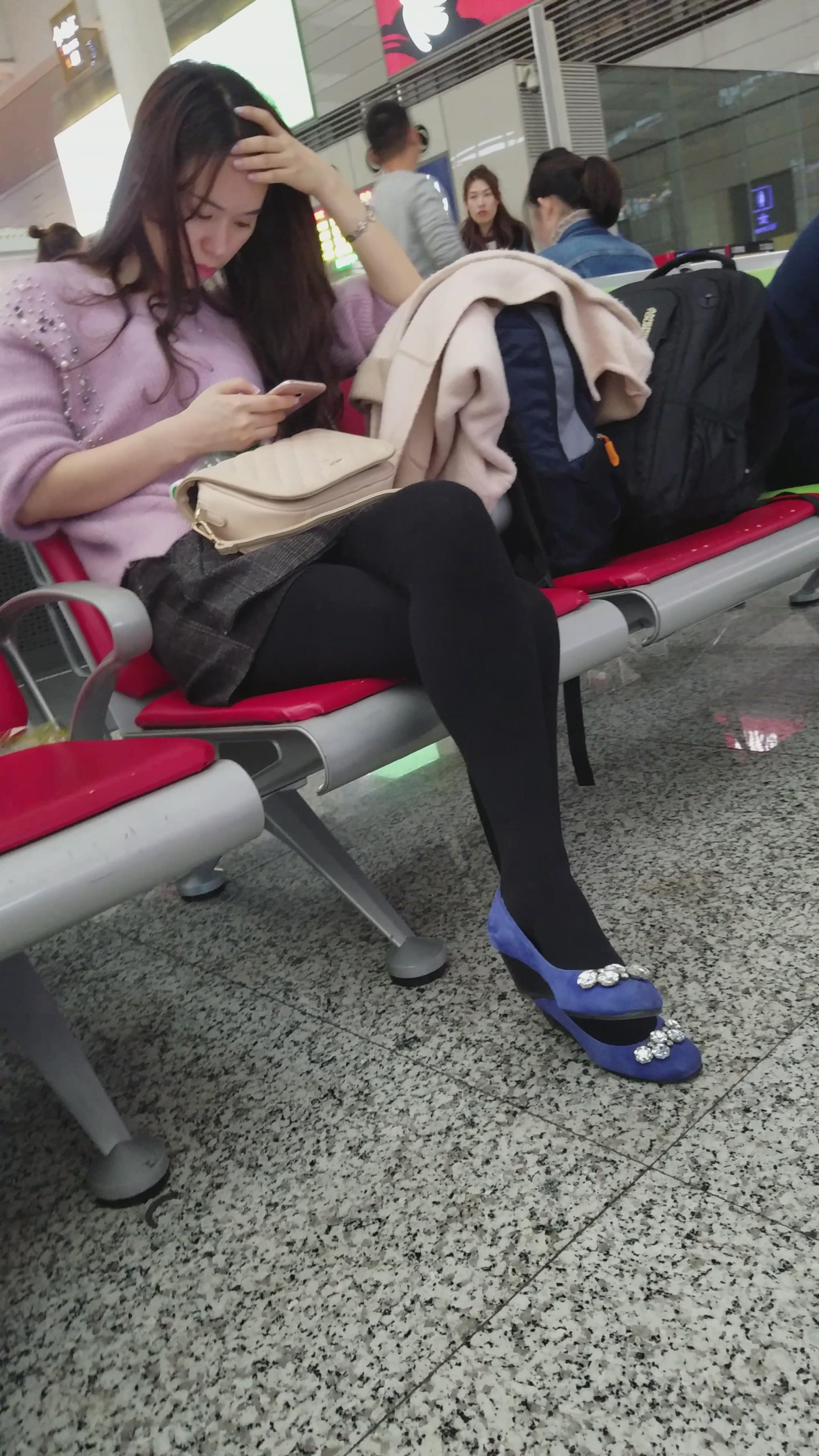 4k-高铁站候车室拍摄甜美清新黑丝蓝色高跟鞋女神姐姐 编号3068 |