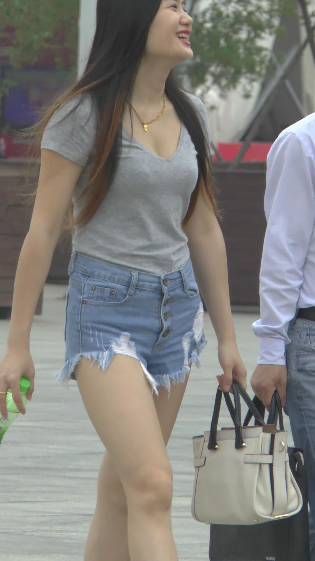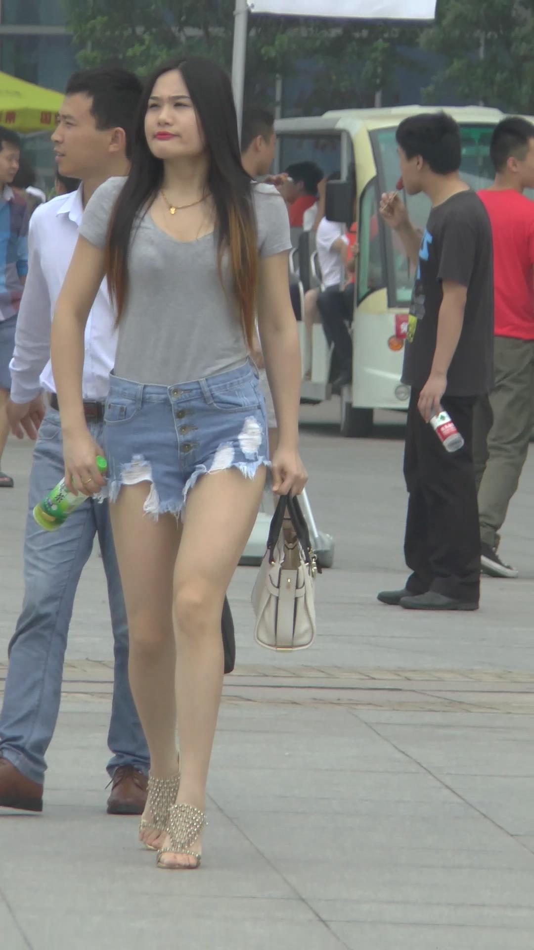 超性感大长腿热裤灰色T恤衫街拍美女视频 编号4087 |