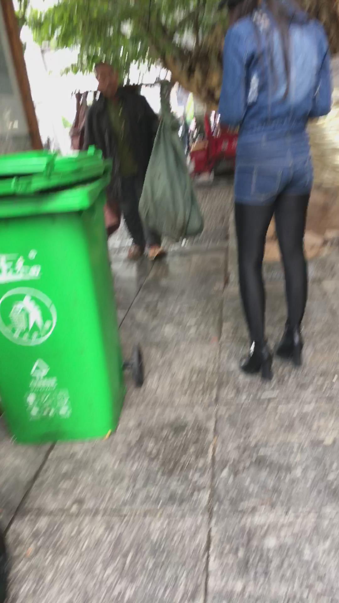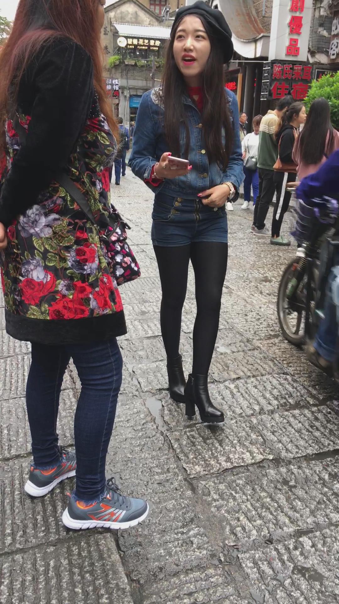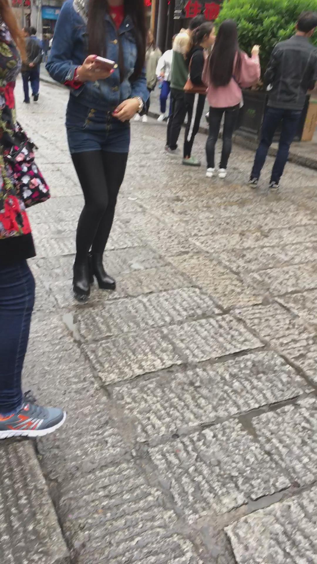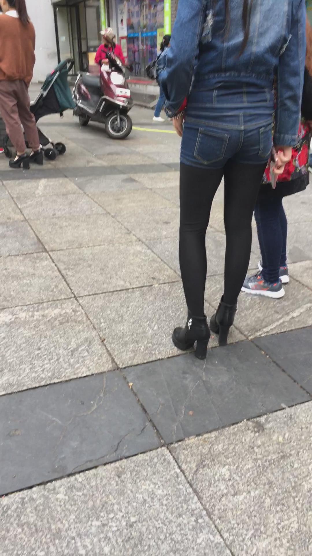 牛仔热裤丝袜打底苗条身材街拍美女 编号4106 |