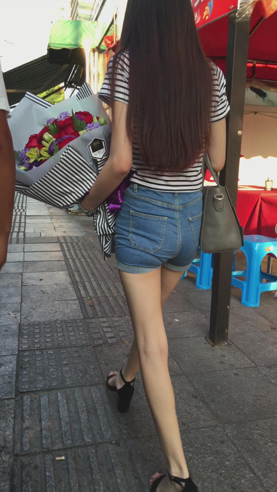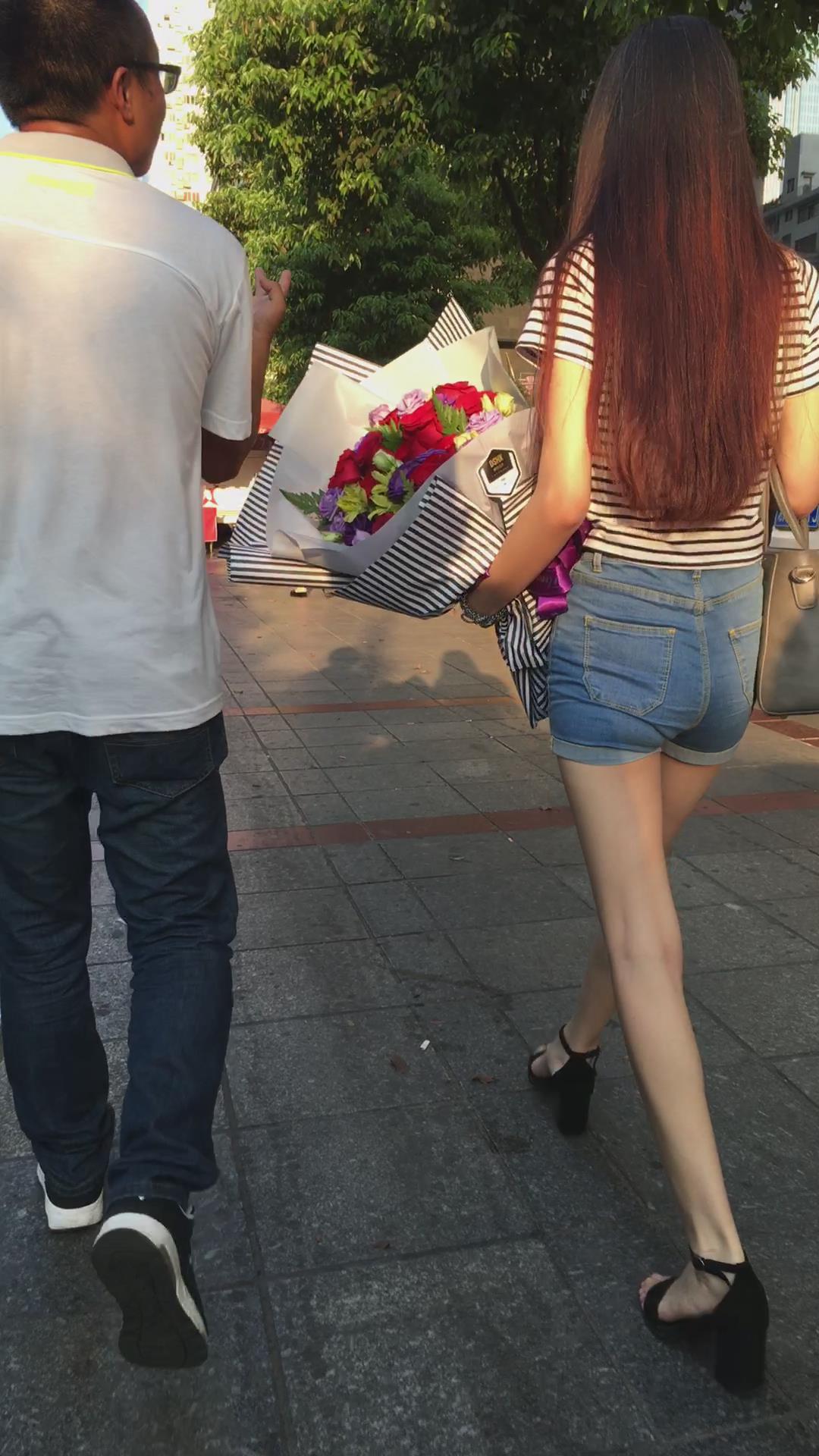 苗条细腿高挑热裤美女收到一束花笑得很开心 编号4192 |