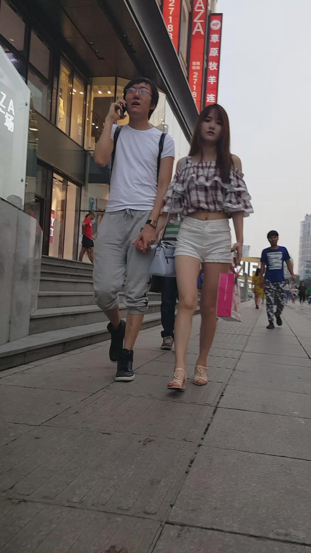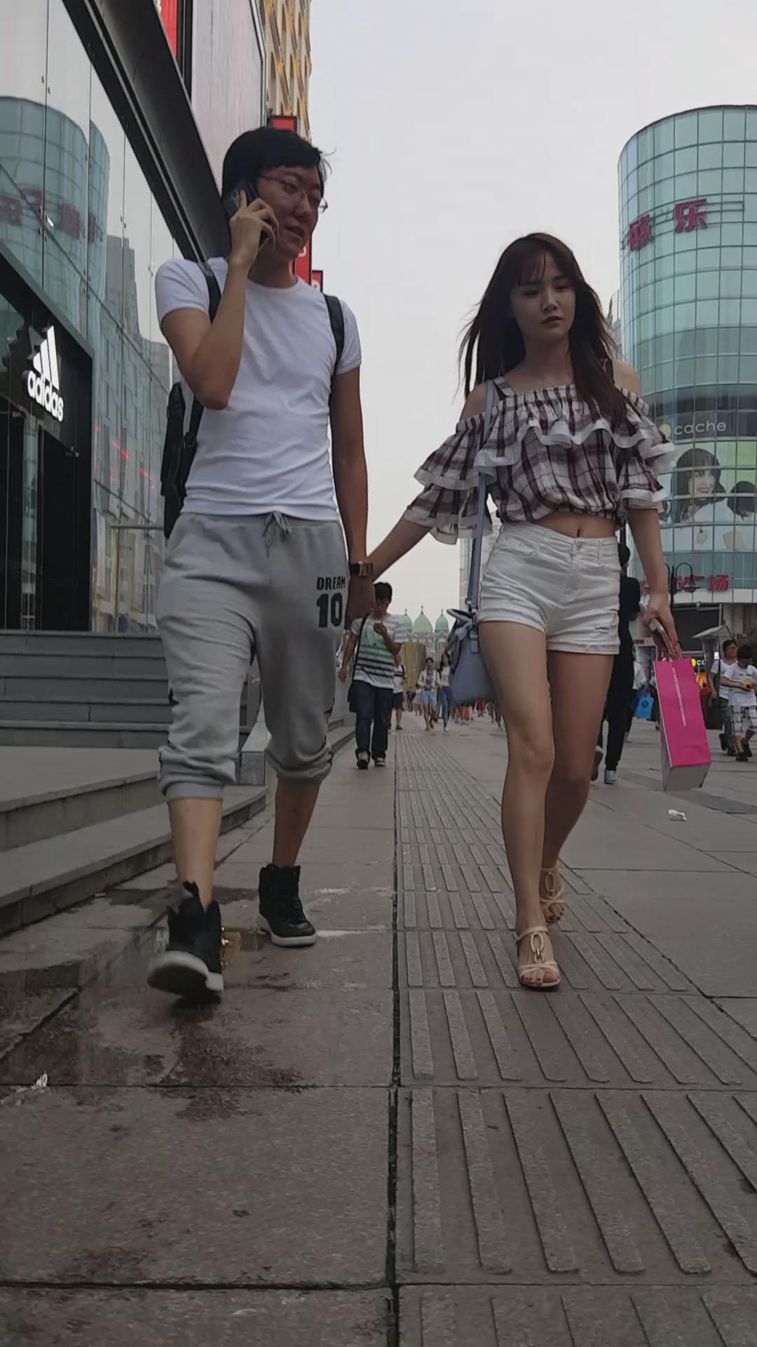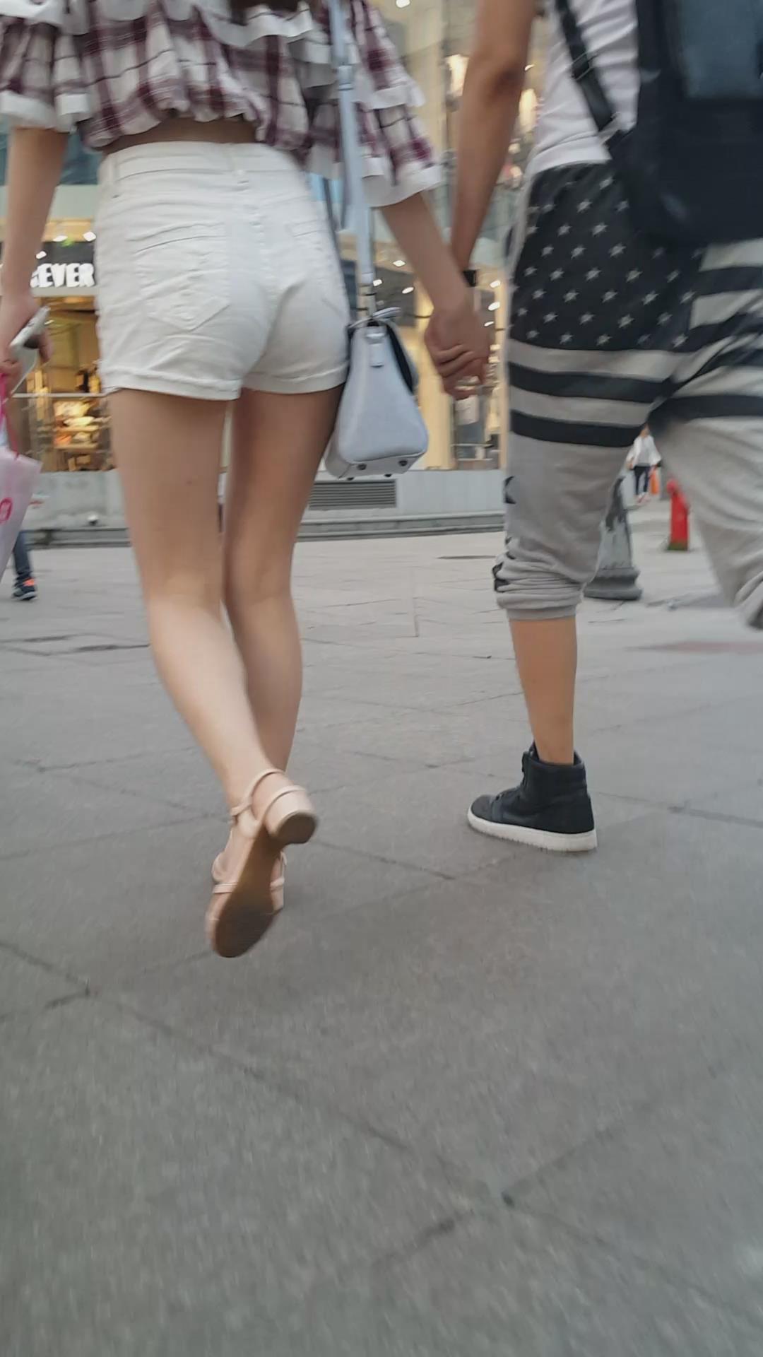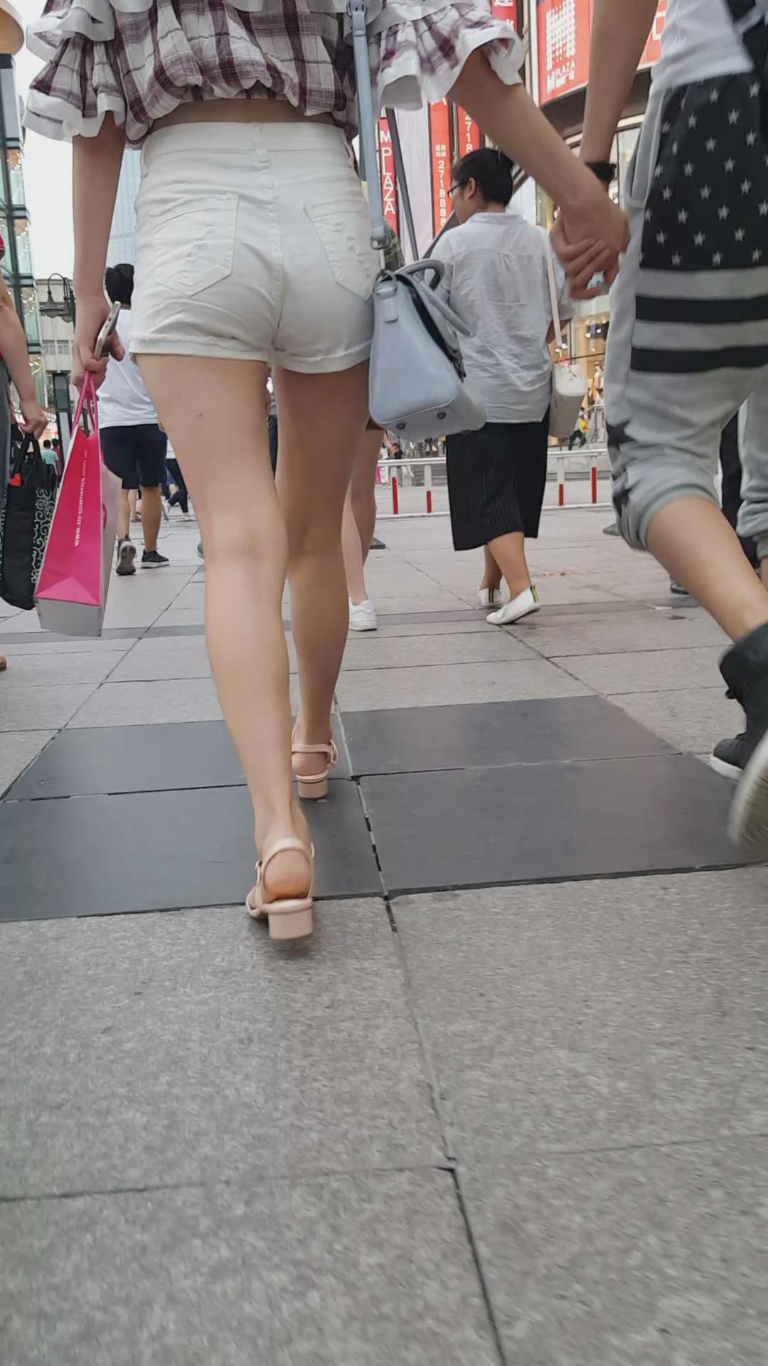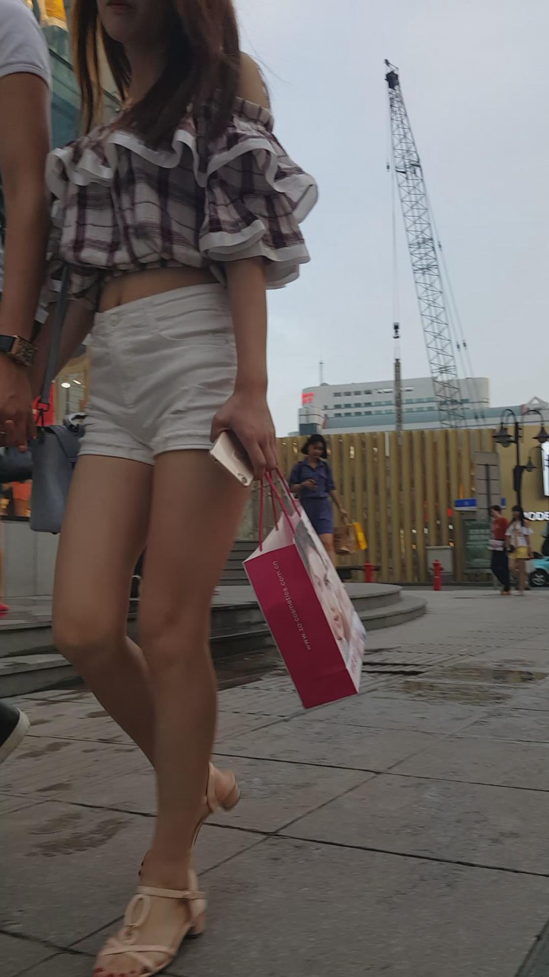街拍的高腰白热裤漏脐长腿美眉 编号4366 |