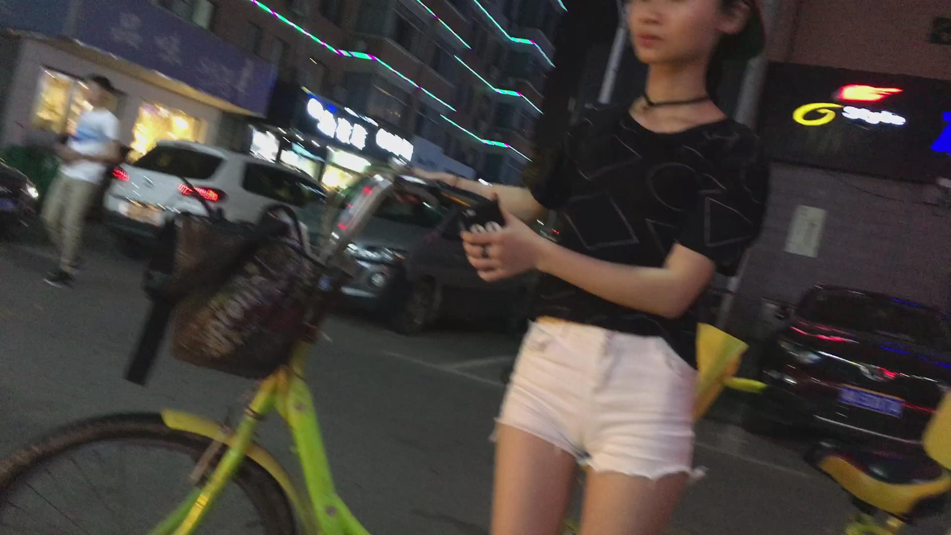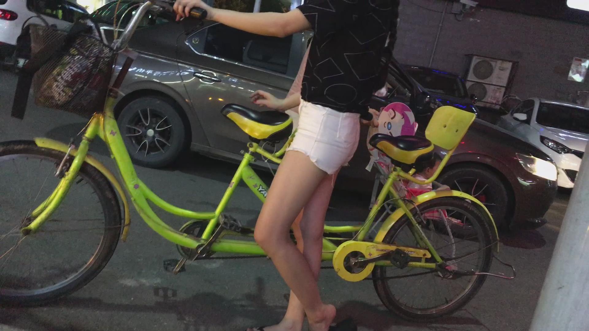 街拍骑双人自行车的白色短裤美女 编号4421 |