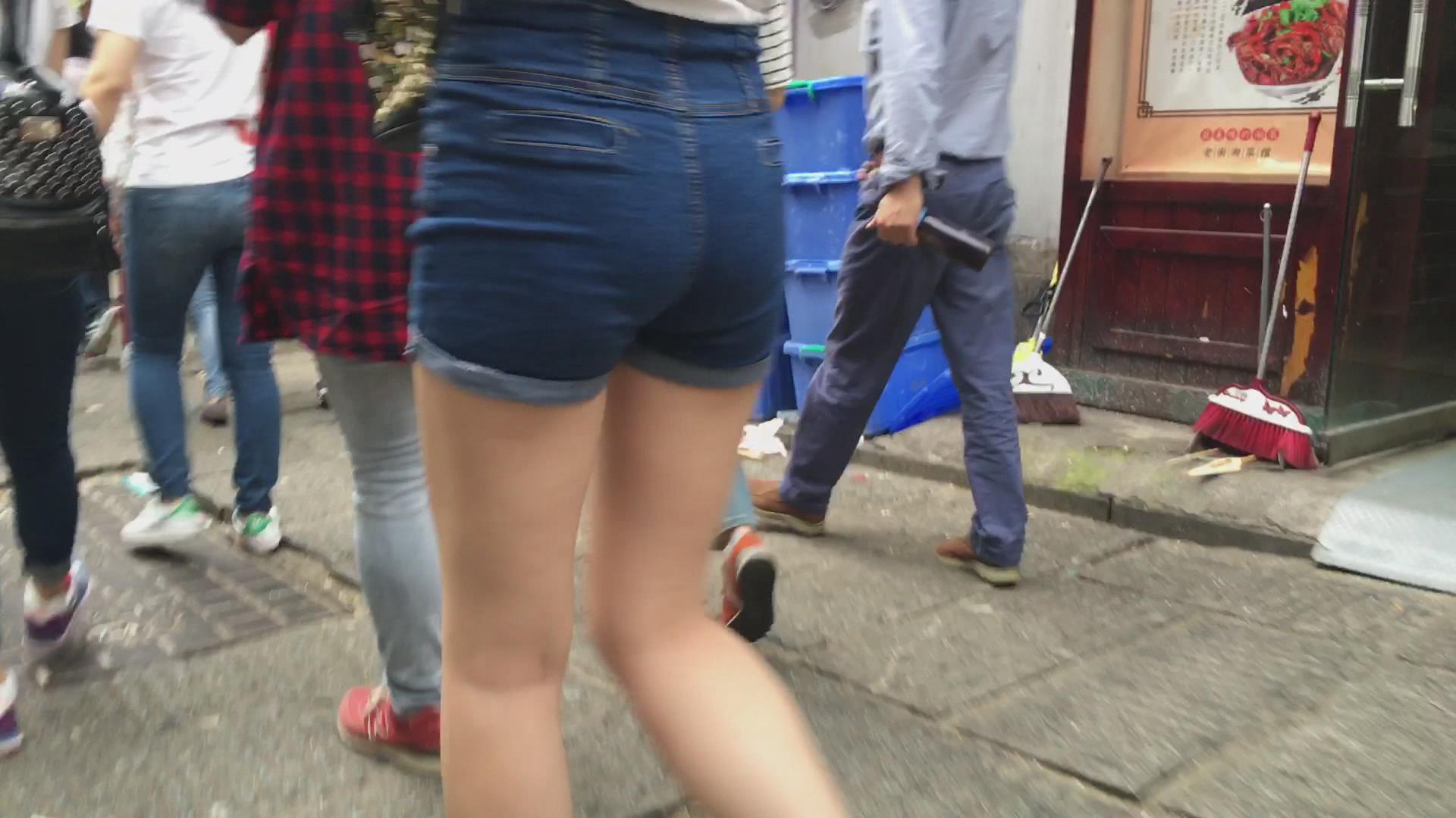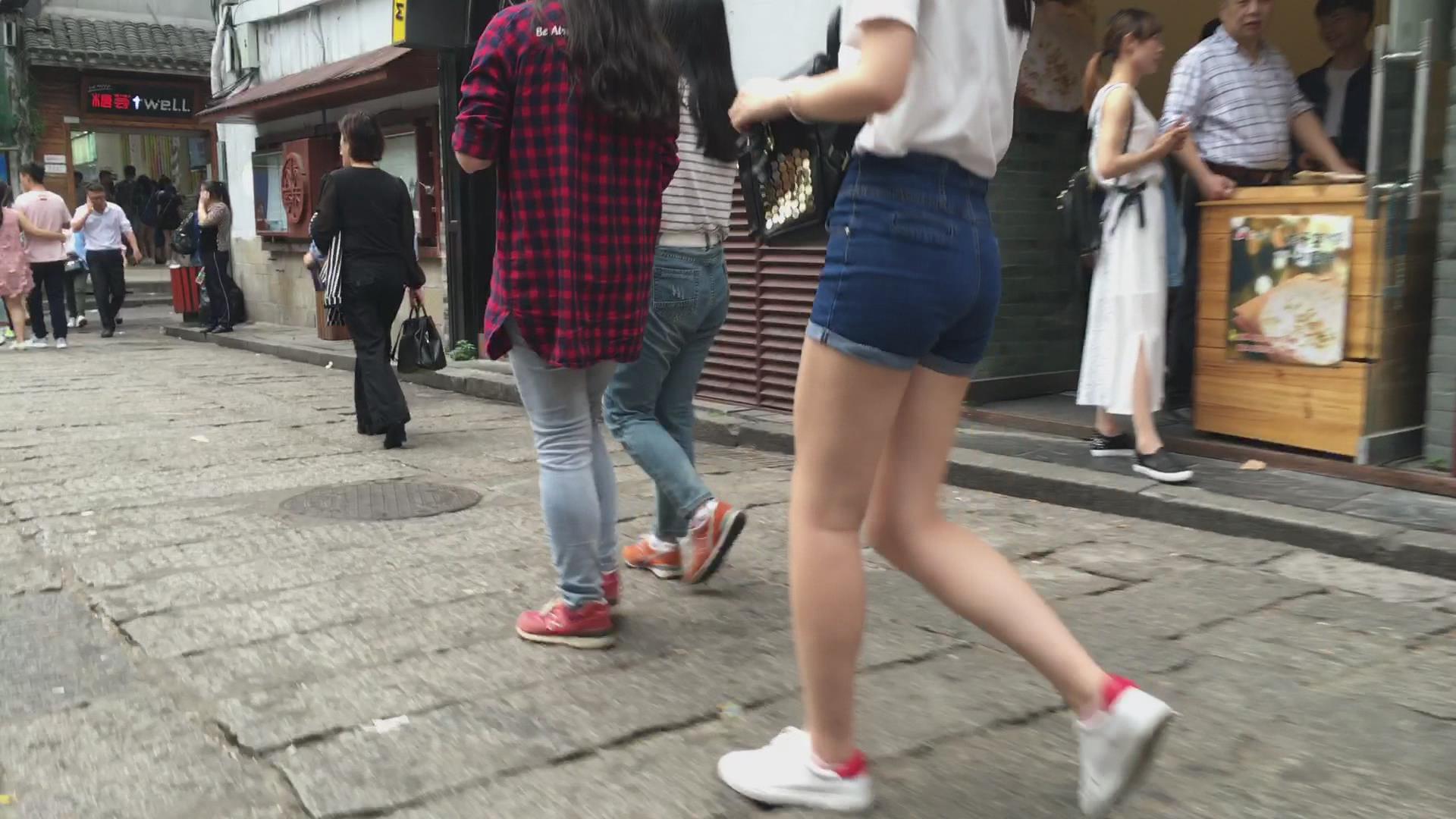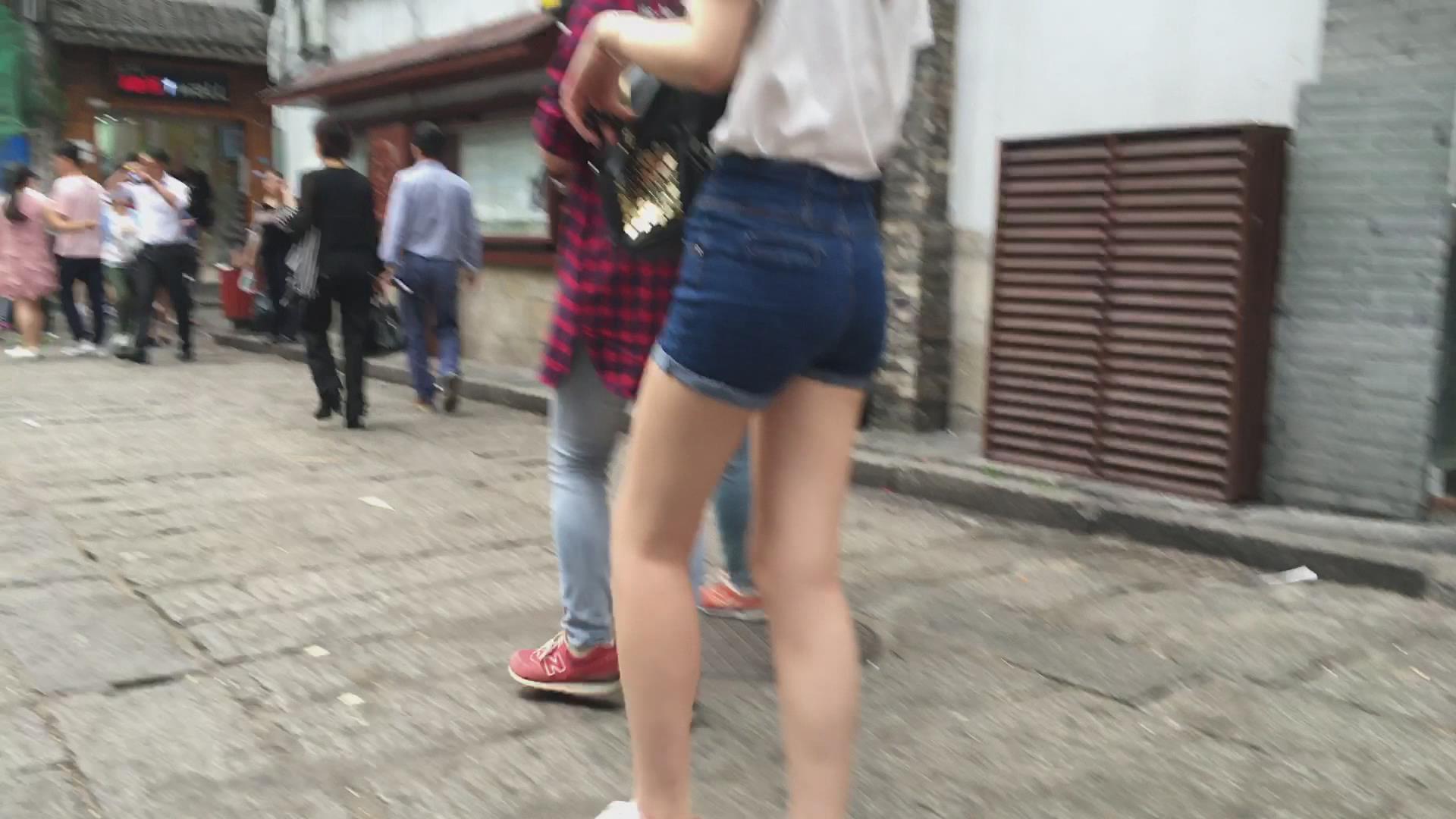 街拍高腰热裤白衬衫美女。 编号4597 |