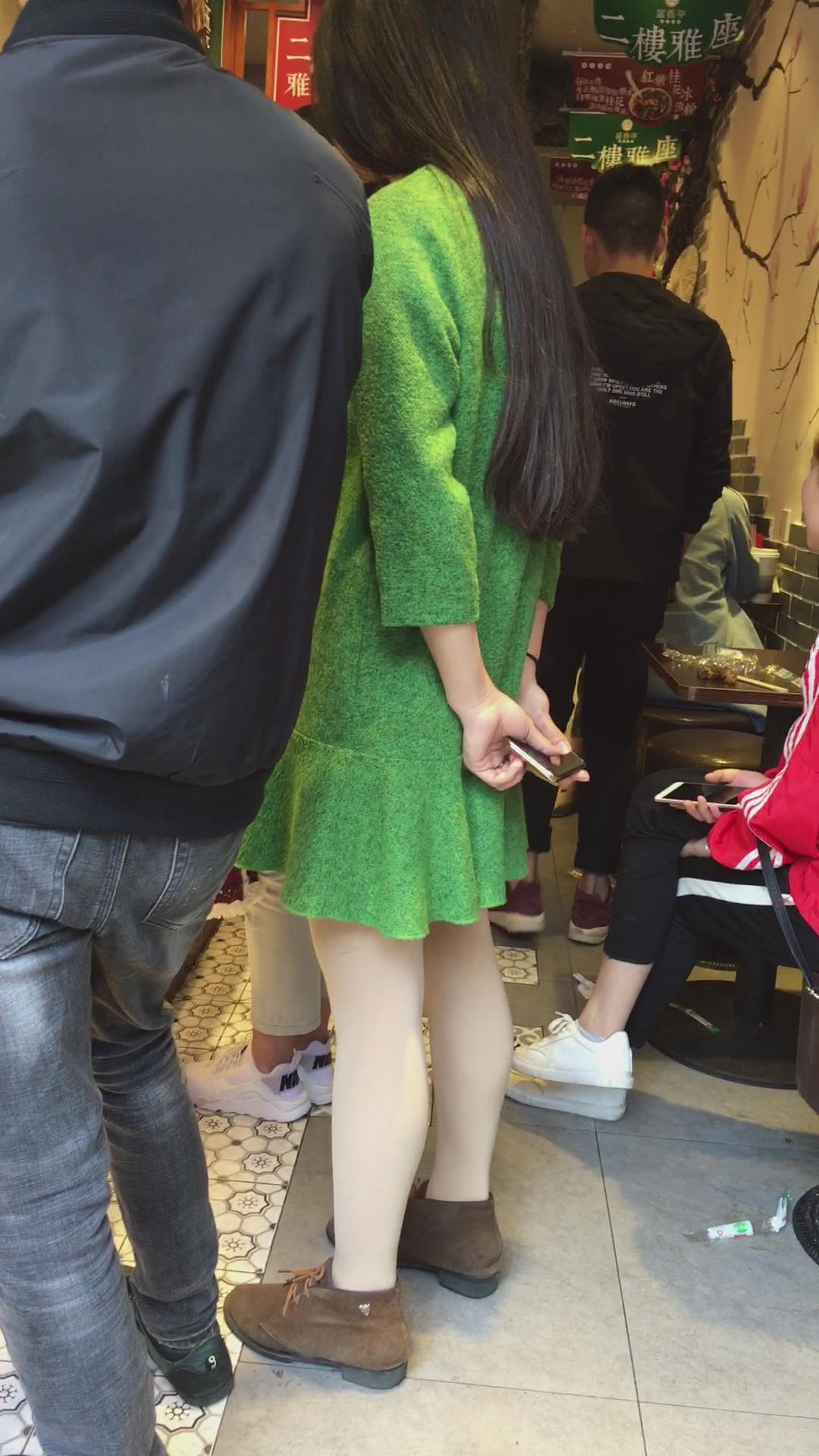 街拍绿裙丝袜美腿气质美女 编号2208 |