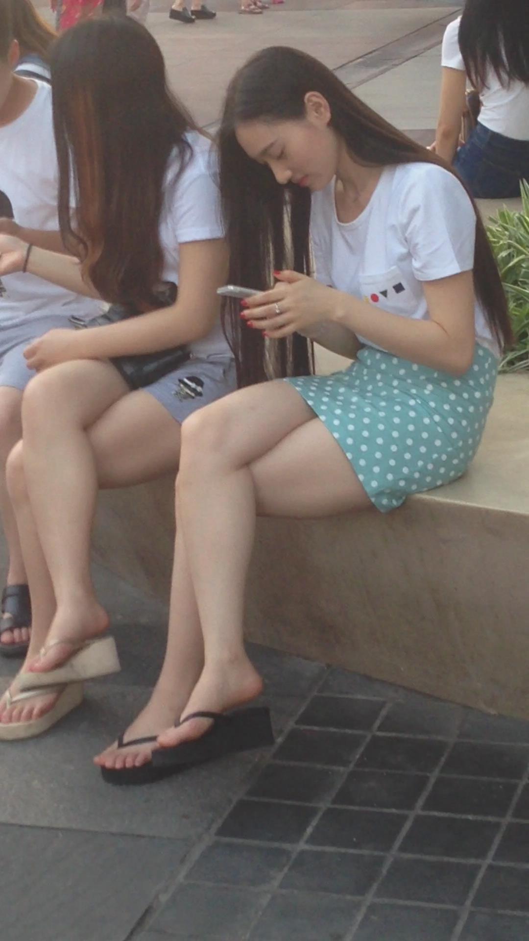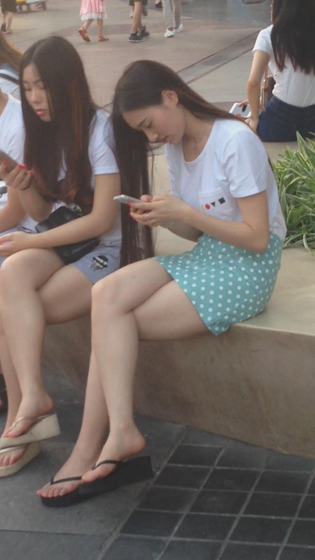 花坛边休息的白皙嫩腿姐妹花,腿玩年 编号2359 |