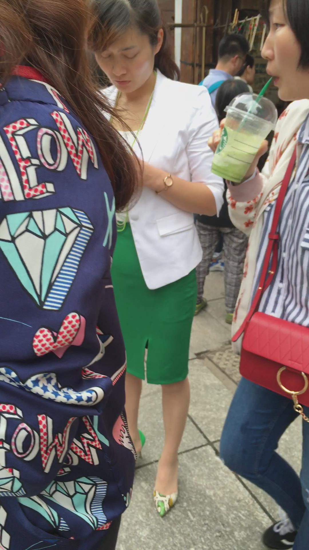 街拍绿色OL包臀裙高跟鞋轻熟女,很有韵味 编号2360 |