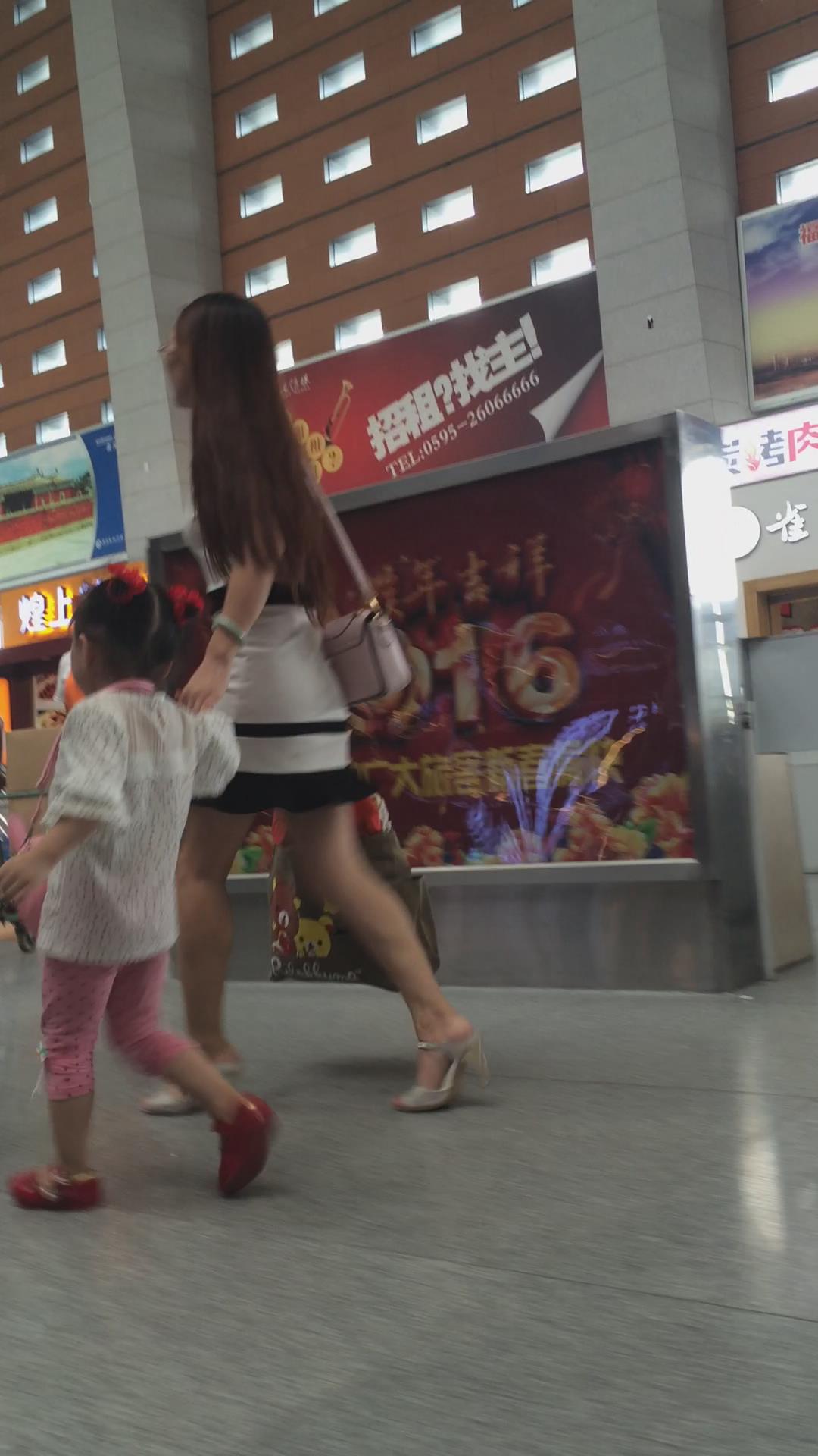 街拍匆忙带女儿赶车的翘臀高跟美腿连衣裙少妇 编号2379 |