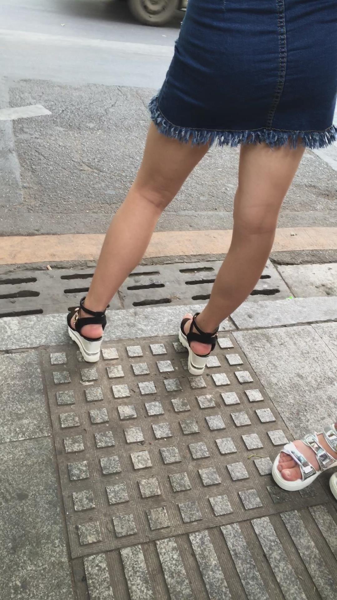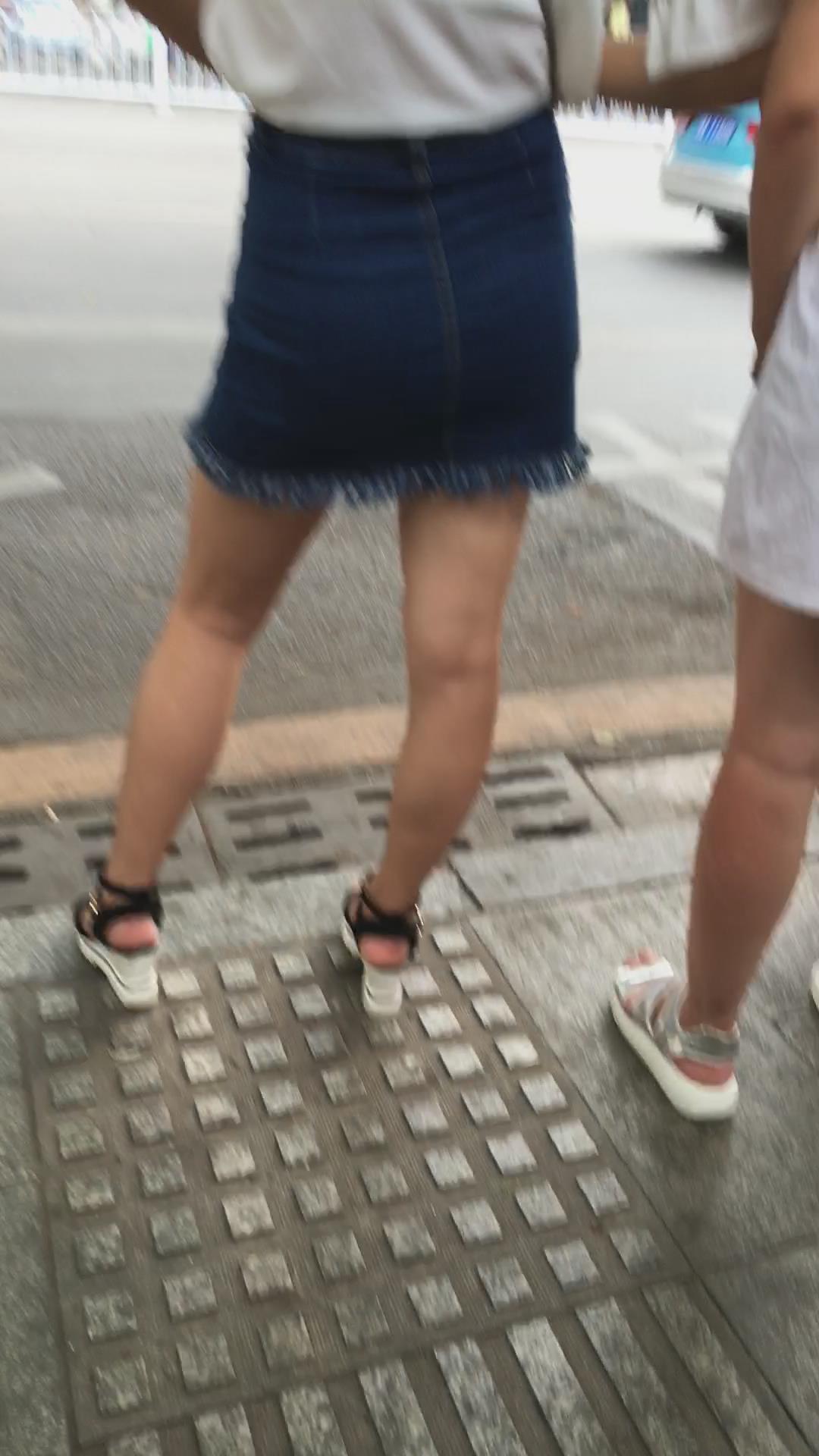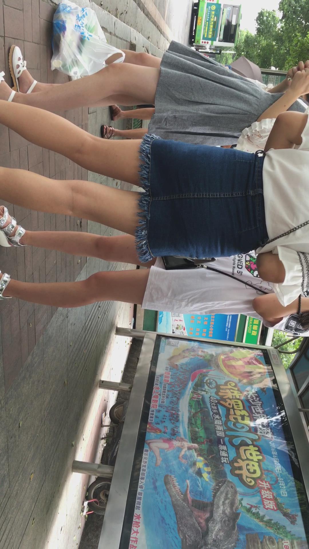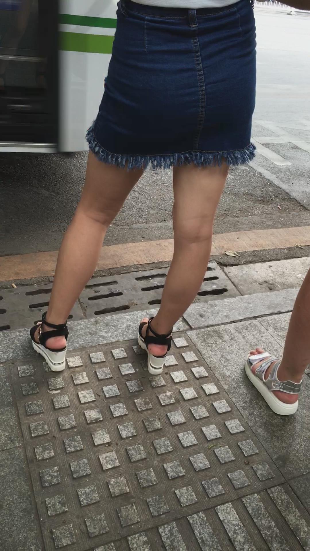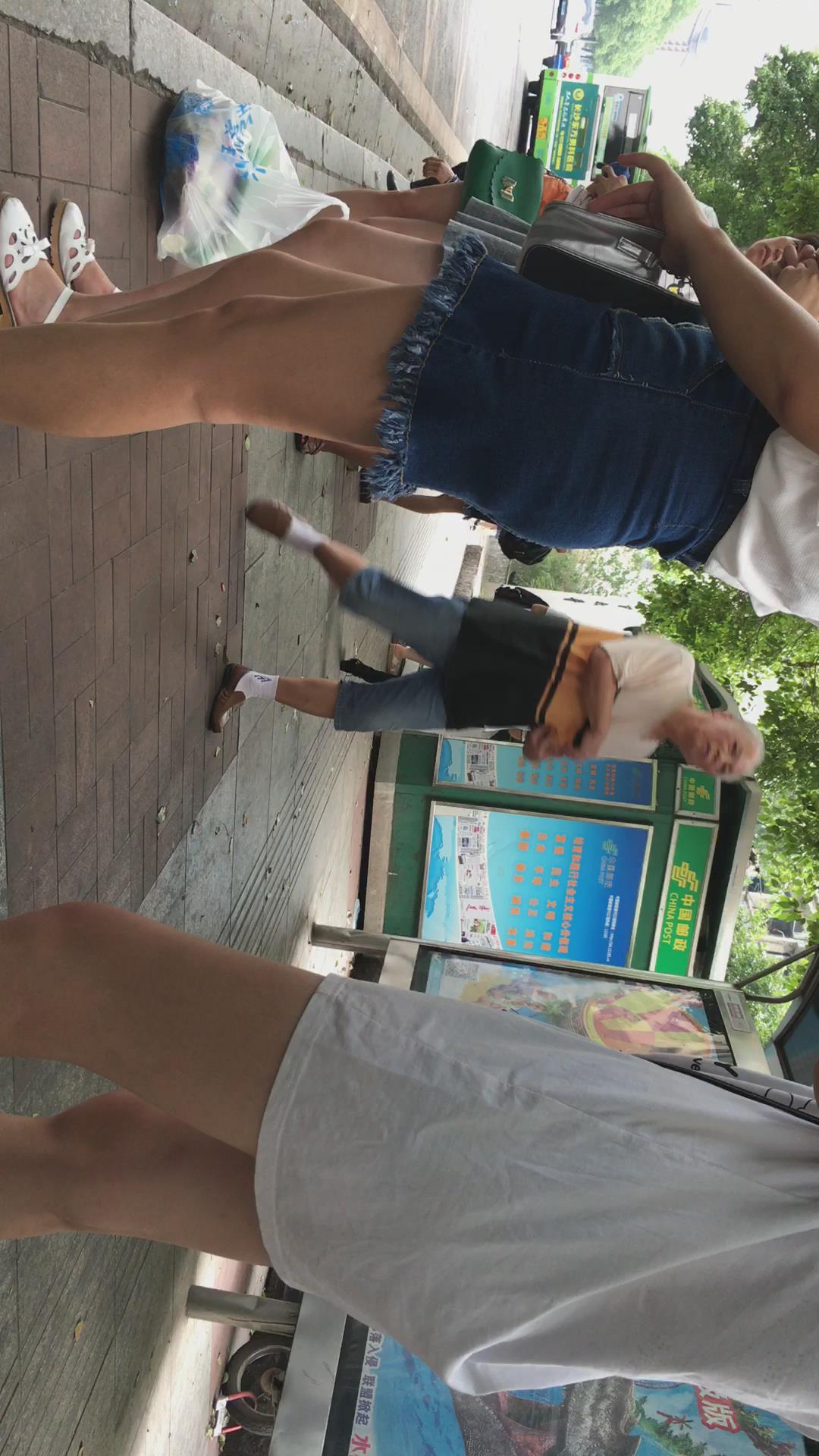 高腰牛仔裙裸腿妹子公交站等车 编号2408 |