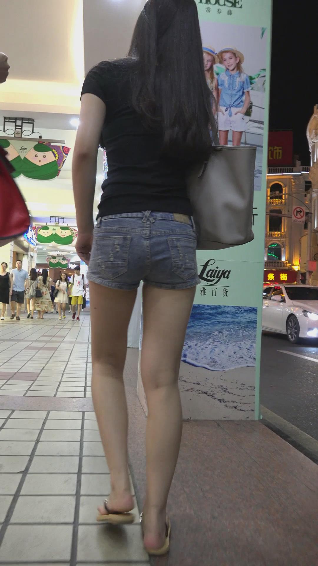 蓝色紧身牛仔短裤美臀美女 编号4659 |